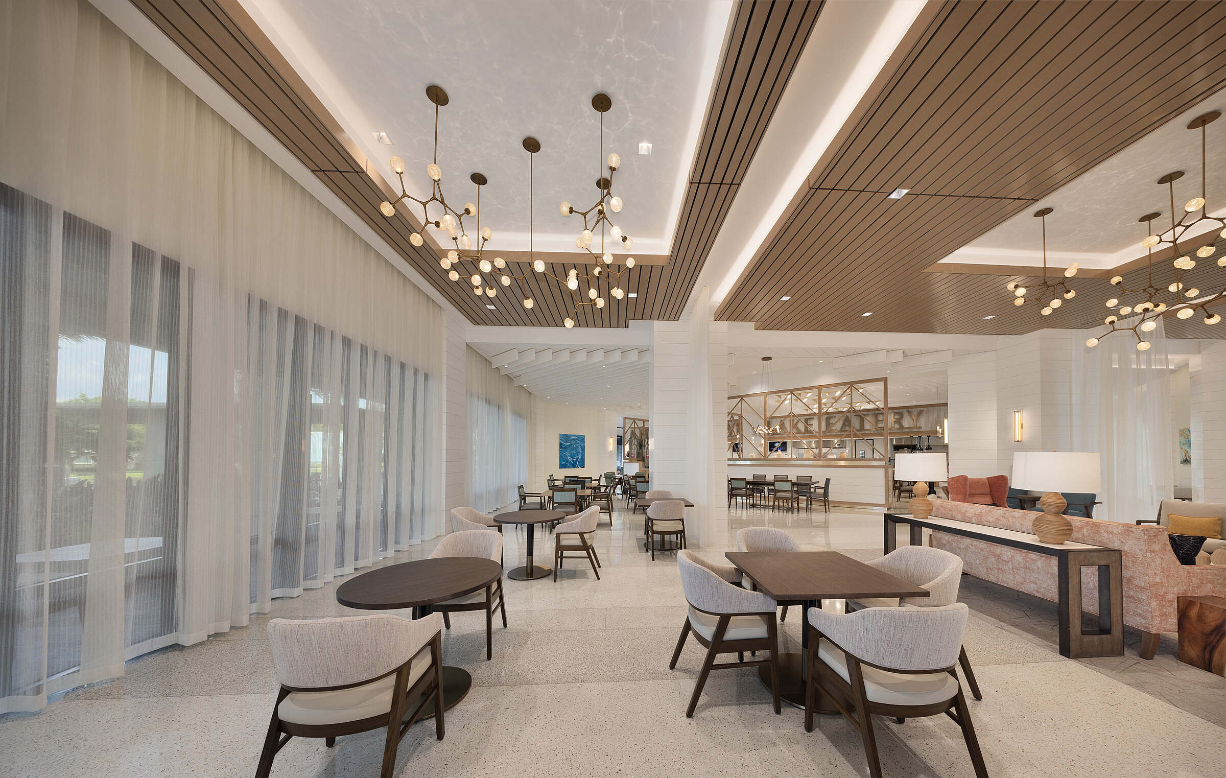 Open dining options and seating areas create opportunities for residents to feel at home, akin to a residential “great room,” fostering a sense of community and belonging.