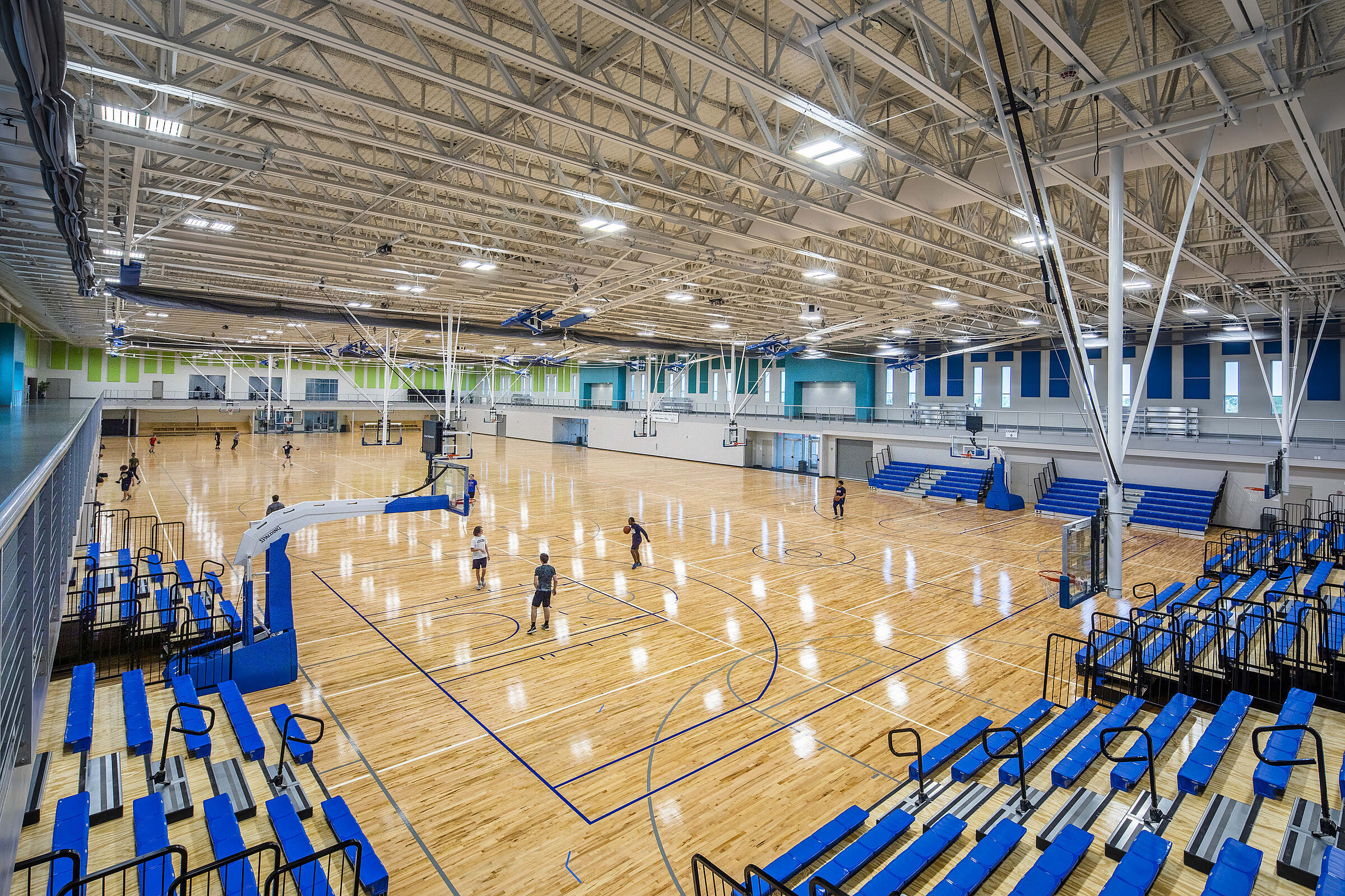 The Fieldhouse features multiple high-performance basketball courts designed for both tournament play and community use. Each court is equipped with professional-grade flooring, adjustable hoops, and spectator seating to accommodate events ranging from youth leagues to competitive showcases.
