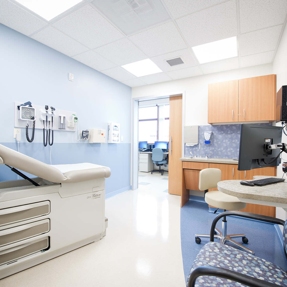 In an effort to better integrate and coordinate patient care as part of the patient centered medical home delivery model, Anne Arundel Medical Center consolidated multiple specialties into one suite in the Belcher Pavilion located on their Annapolis campus. Their Multi-Specialty practice brings together Cardiology, Diabetes & Endocrine, Neurology, Neuropsychology, and Palliative Medicine into one 17,000 SF suite. The suite encompasses 29 exam rooms that can flex between specialties as needed. Testing Rooms include one nuclear camera, two stress test rooms, two ultrasound rooms, and one EMG.