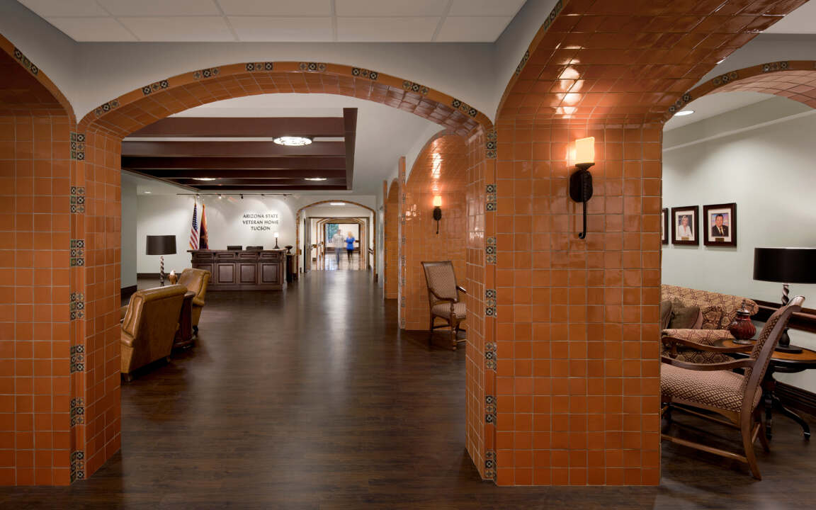 With a population of over 600,000 veterans residing in Arizona, the state’s second Veteran Home is meticulously crafted to achieve LEED Silver certification. It presents a thoughtful neighborhood-oriented design encompassing four 30-bed long-term care units, strategically serving the southern region of the state.