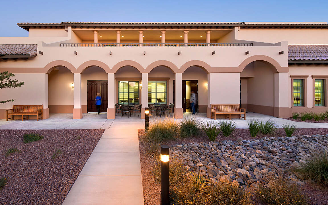 This impressive skilled nursing facility spans 137,000 SF and is situated in close proximity to the Southern Arizona Veterans Healthcare Center in Tucson. Comprising four individual 26,000 SF single-story patient buildings, often referred to as “neighborhoods,” this facility accommodates a total of 30 private rooms within each of these neighborhoods. Within these neighborhoods, a trio of “households,” each containing ten patient rooms, create a nurturing environment. These households are equipped with living areas, dining spaces, engaging activity zones, cozy country kitchens, and complementary ancillary spaces.