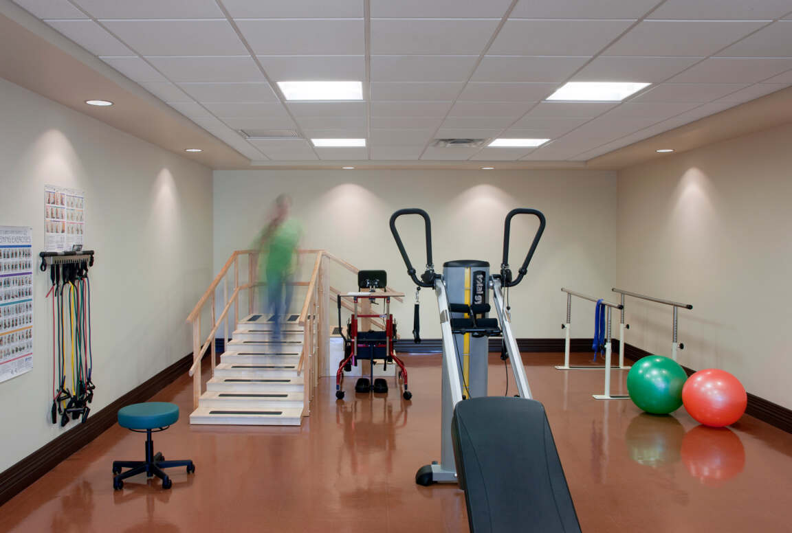 The physical therapy rooms are thoughtfully designed to support rehabilitation and mobility, featuring specialized equipment tailored to meet the needs of aging veterans. These spaces promote healing and independence, helping residents regain strength and improve their quality of life in a supportive environment.