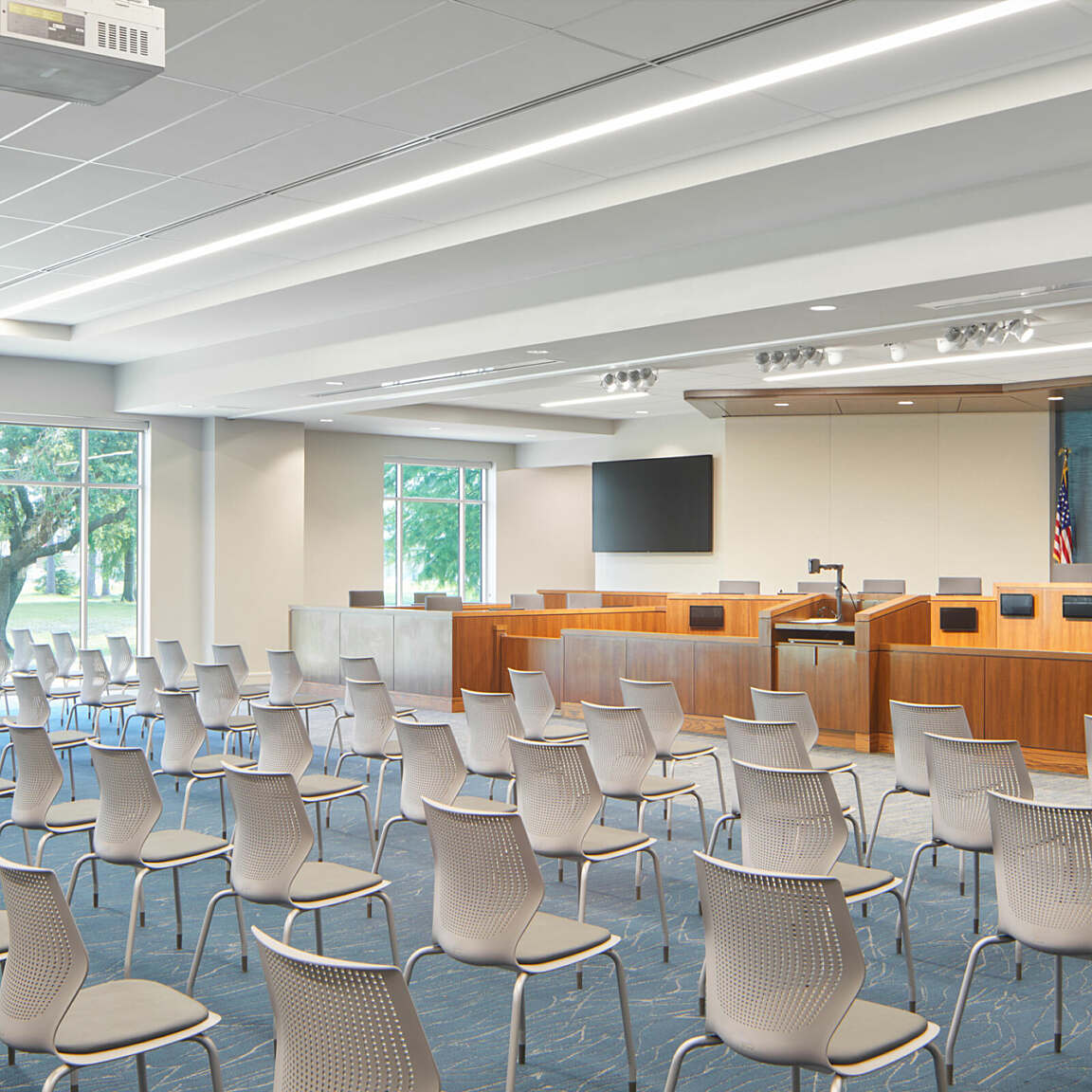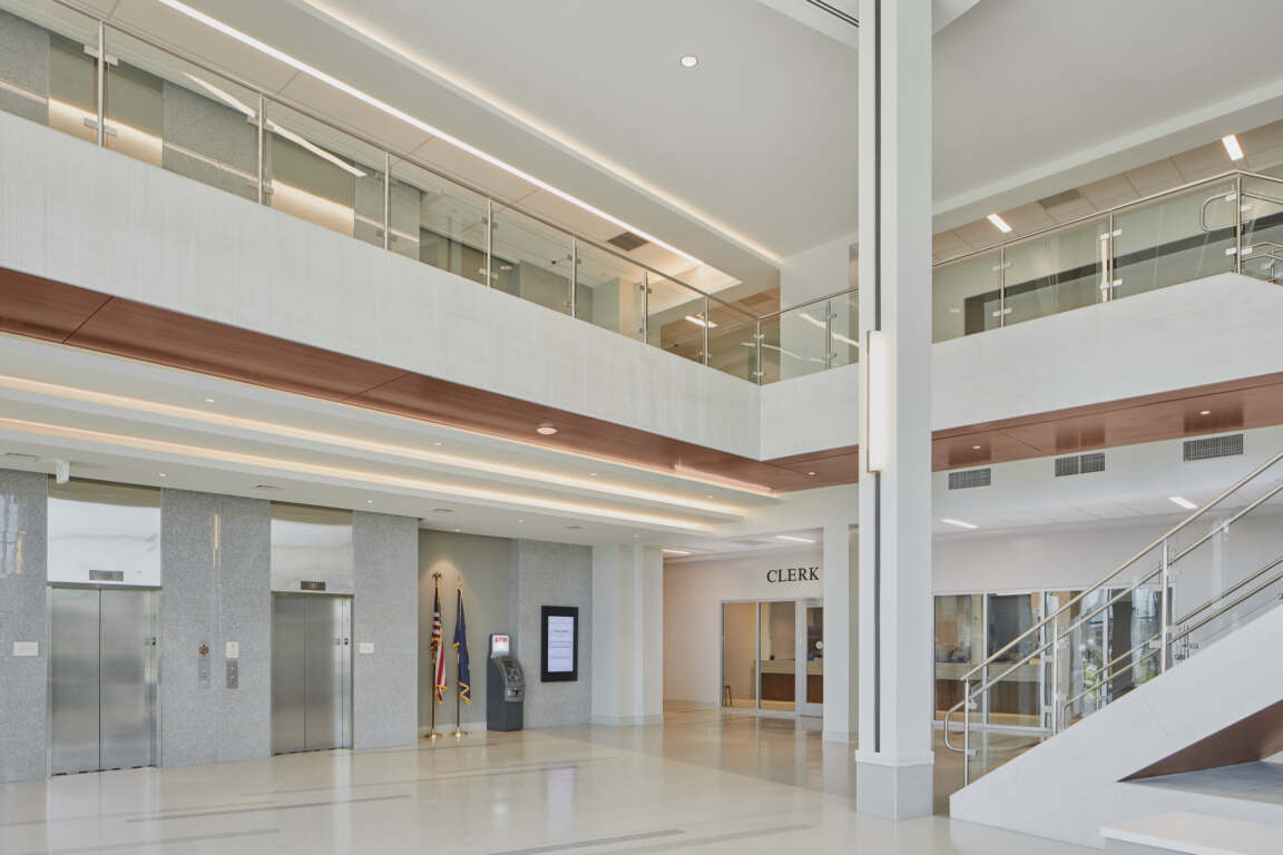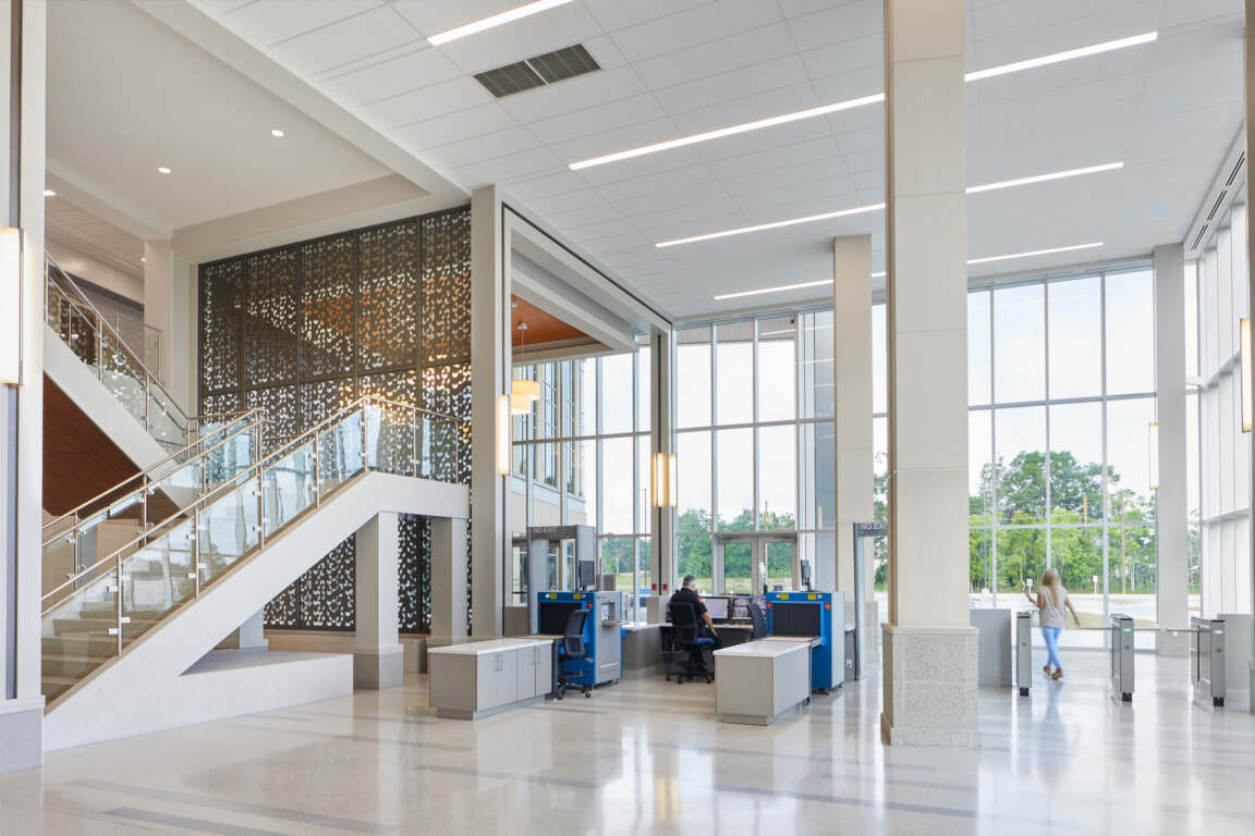 The 3-story building includes eight courtrooms, judges’ chambers, and administrative spaces for the Clerk of Court and Ascension Parish Council staff members.