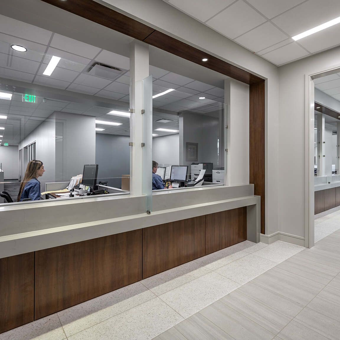 The design team selected durable, easy-to-maintain interior finishes, including terrazzo flooring and porcelain tile along with wood accents.