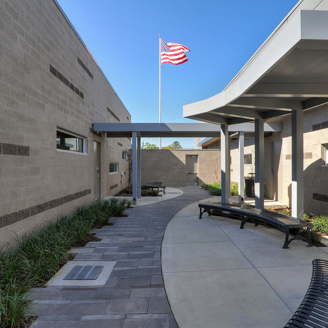 The client challenged the design team to create a welcoming structure that would anchor an identifiable brand for the Sheriff’s Office, while at the same time safeguarding daily operations and employees.