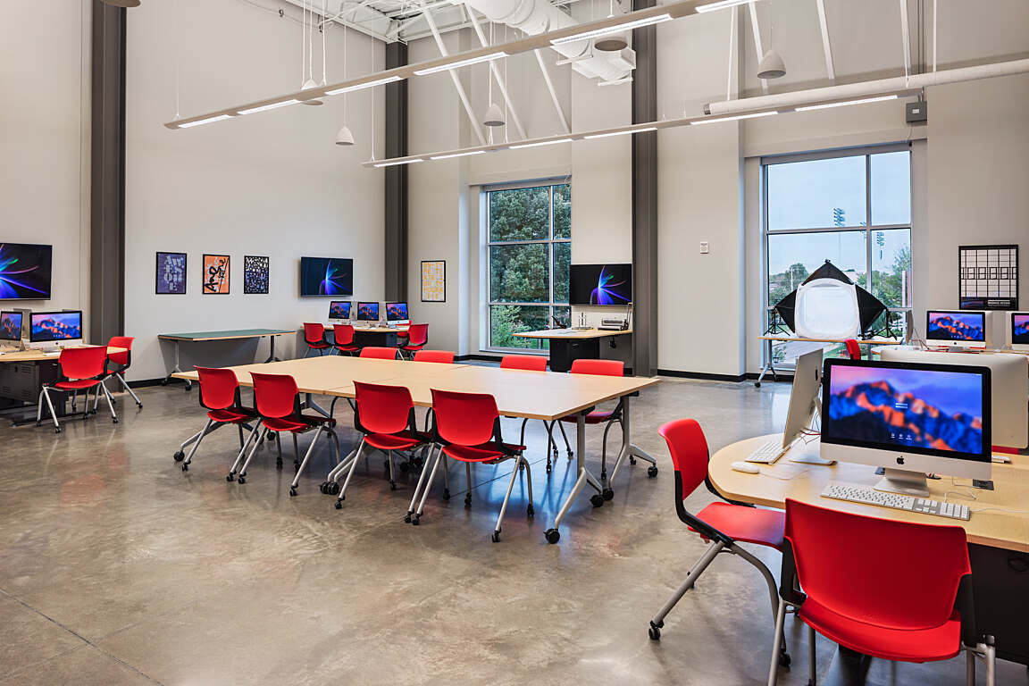 Classrooms are outfitted with cutting-edge technology that supports hands-on, student-centered learning across a range of disciplines. From digital arts and photography to printmaking and illustration, these tech-enabled spaces empower students to explore, create, and collaborate in dynamic, flexible environments.