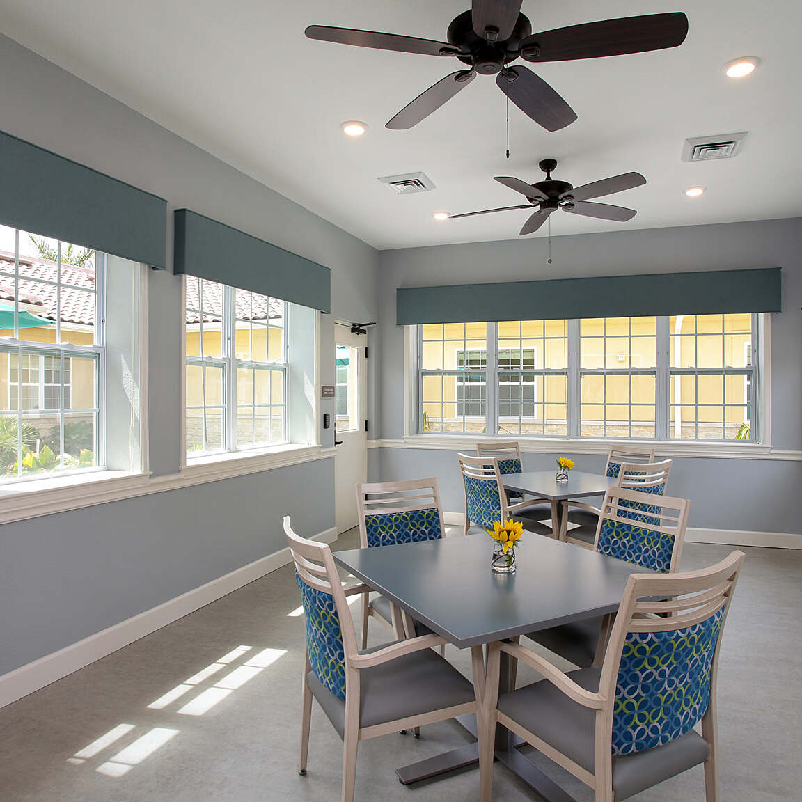 The 50 resident units within each facility strike a balance between privacy and communal living. Each room comes equipped with its own private restroom, ensuring convenience and dignity for residents. The innovative figure-eight layout of the facilities enhances the living experience, featuring enclosed outdoor courtyards and hallways. This design promotes outdoor access and also guides residents back to their rooms and common areas. In embracing a holistic approach to care, the Autumn Leaves communities exemplify a commitment to providing a supportive and enriching environment for individuals facing Alzheimer's and dementia.