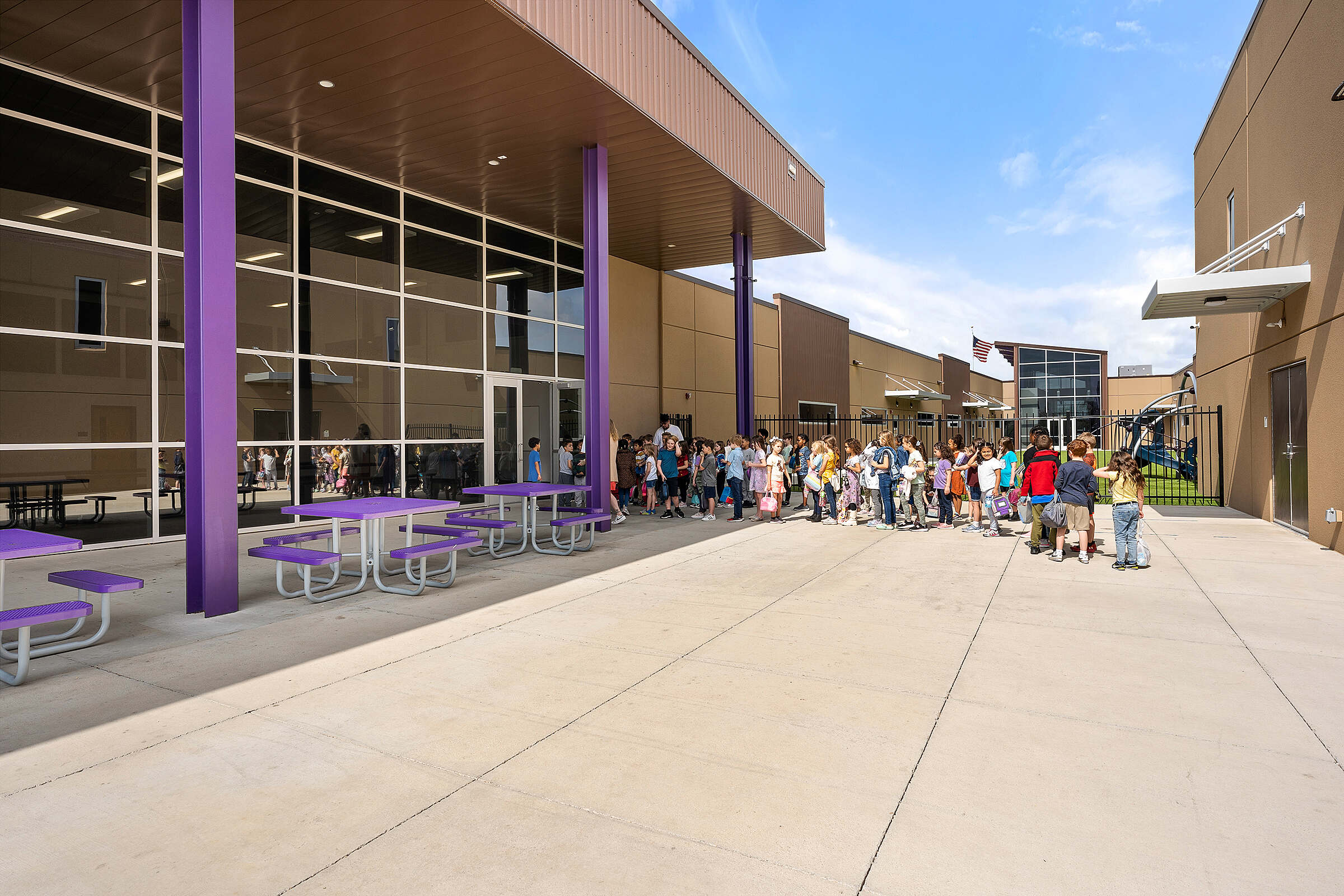 Serving grades K-5, BASIS Benbrook offers a dynamic academic curriculum. The school includes 27 classrooms, multi-purpose rooms, indoor play area, exercise room and administrative offices. The building is arranged in a ‘U’ shape with a large exterior play yard in the center providing maximum protection for the students. Large, covered patios provide flexible outdoor spaces for learning and play.