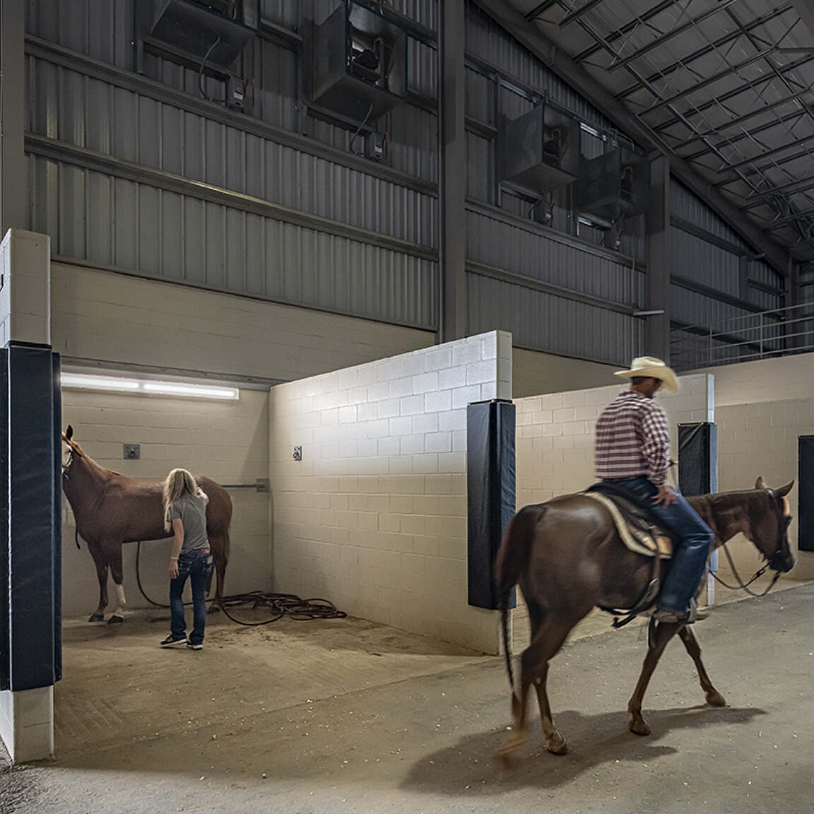 Our team provided professional architectural services for this new facility on the existing Bell County Expo campus. The 175,000 SF facility is located adjacent to an existing Horse Barn and Exposition Building. The heart of the facility is a 130' x 300' performance surface in a conditioned space with a generous concourse and unrestricted view of the arena. There is seating for 800 patrons. Attached is a 100' x 200' warm-up arena with stalls and pens.