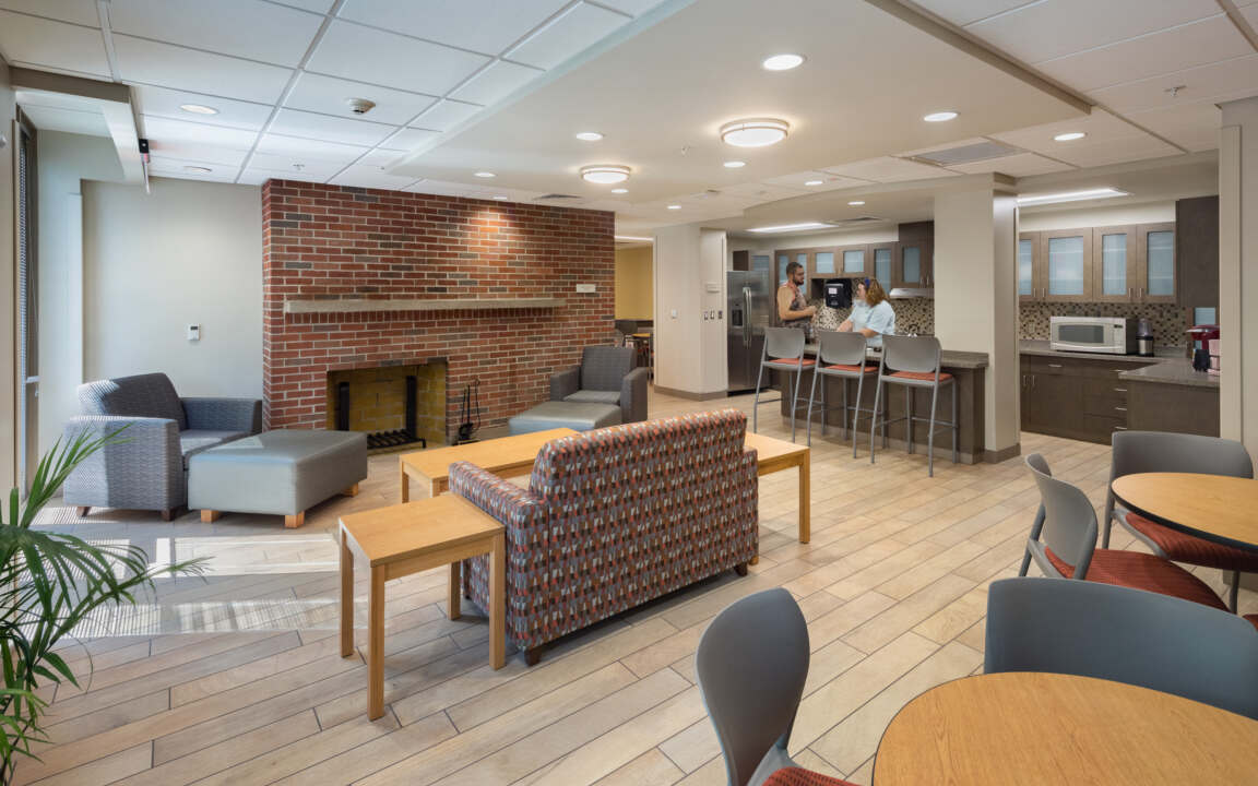 Seabury Hall was originally built in 1959, and features the College’s signature Colonial-style architecture. This is the facility’s first significant renovation since being constructed more than 50 years ago. The entire facility was renovated, including common rooms and group study rooms, to provide a more modern living environment for students. The expansion added 18 beds as well as much-needed study rooms and lounges, in addition to office space for residence life staff. The lowest level features a renovated recreation room, living room with full kitchen for student use, several group study rooms and a laundry room. The upper two residential floors also include group study rooms.