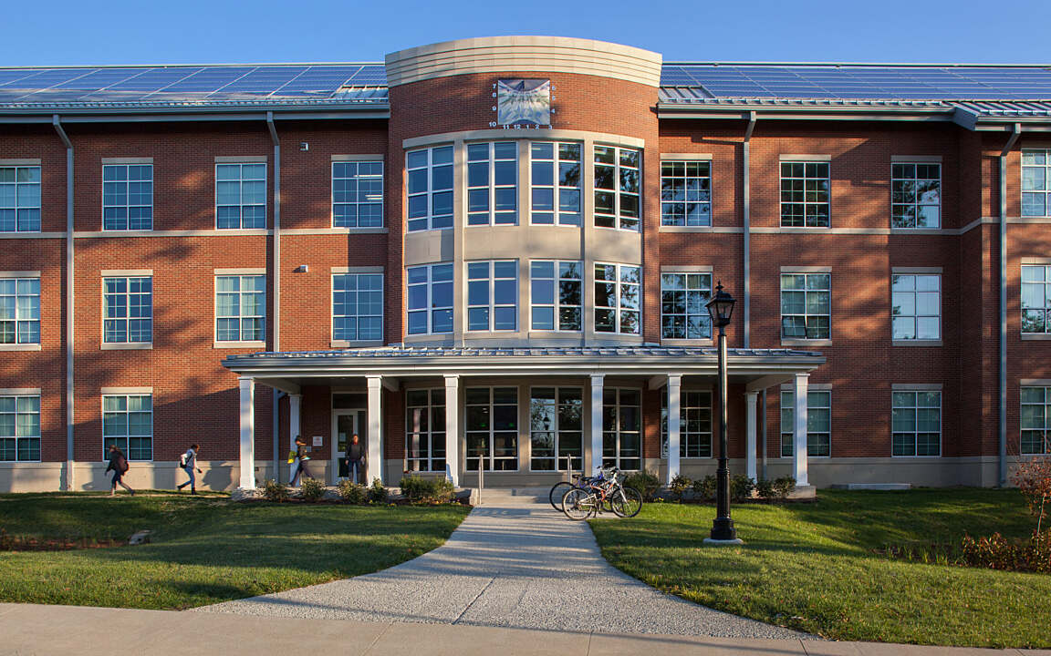 The facility incorporates building systems that promote environmental awareness, including a dashboard that monitors real-time energy use and production. This interactive tool encourages students to consider their personal consumption habits as part of the overall sustainability mission.