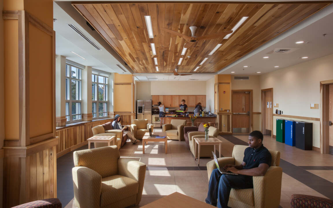 Shinn Residence Hall at Berea College was designed to reflect the college’s commitment to sustainable living and its culture of simplicity. The new facility adds 121 beds to support student housing needs as older dorms undergo renovation, while offering flexible, community-focused living environments in response to student feedback.