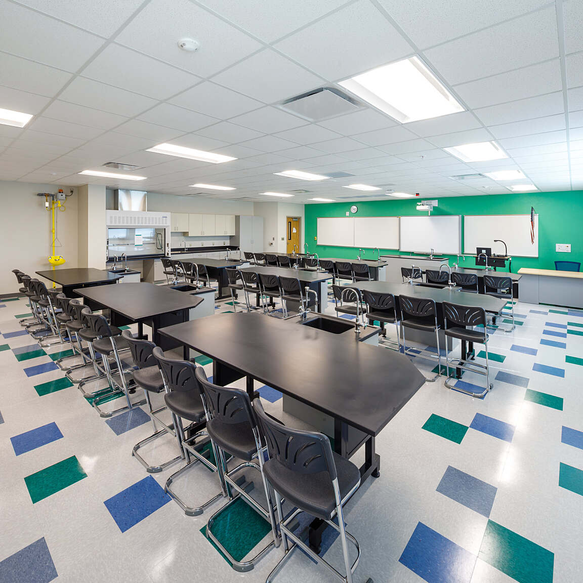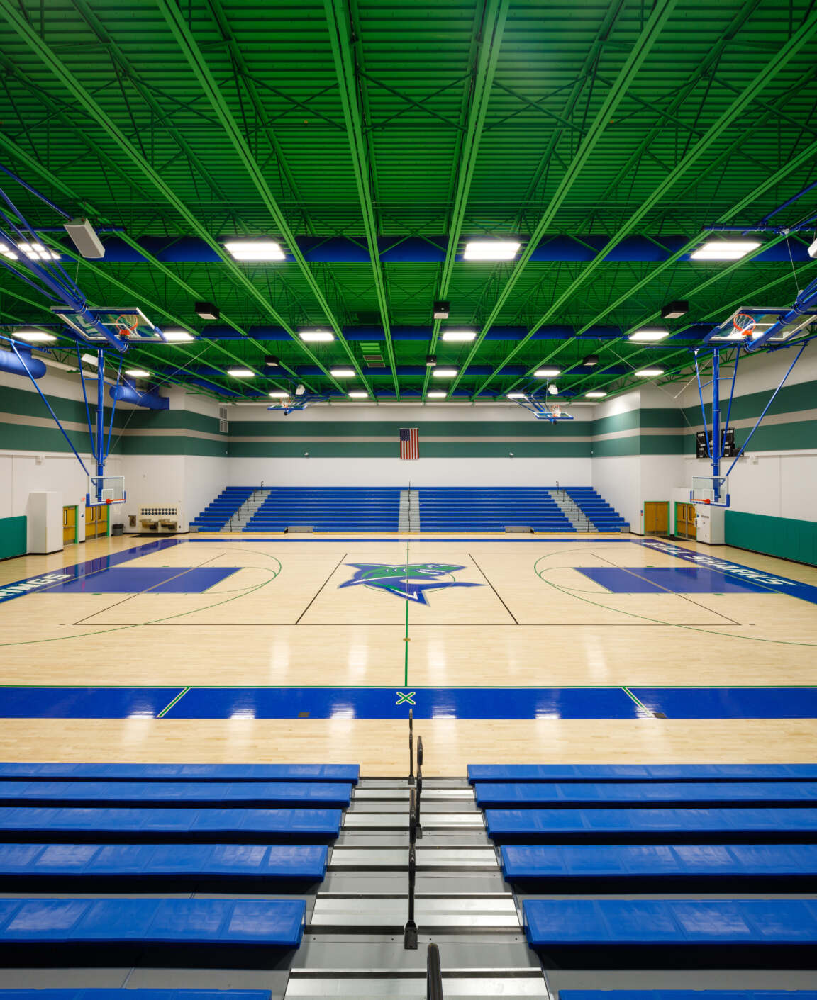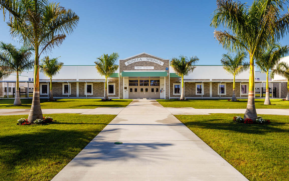 Bonita Springs High School was the first school to utilize the new prototype design, as well as the first public school in the newly established Town of Bonita Springs. The 250,000 SF, three building plan features a two -story academic building at the center, flanked by a dining and athletic facility on one side and an arts center on the other. Each building has a secured entry which ties the campus together and provides for a single point of entry as well as a public access entry, allowing autonomous use of the athletic and performing arts venue.
