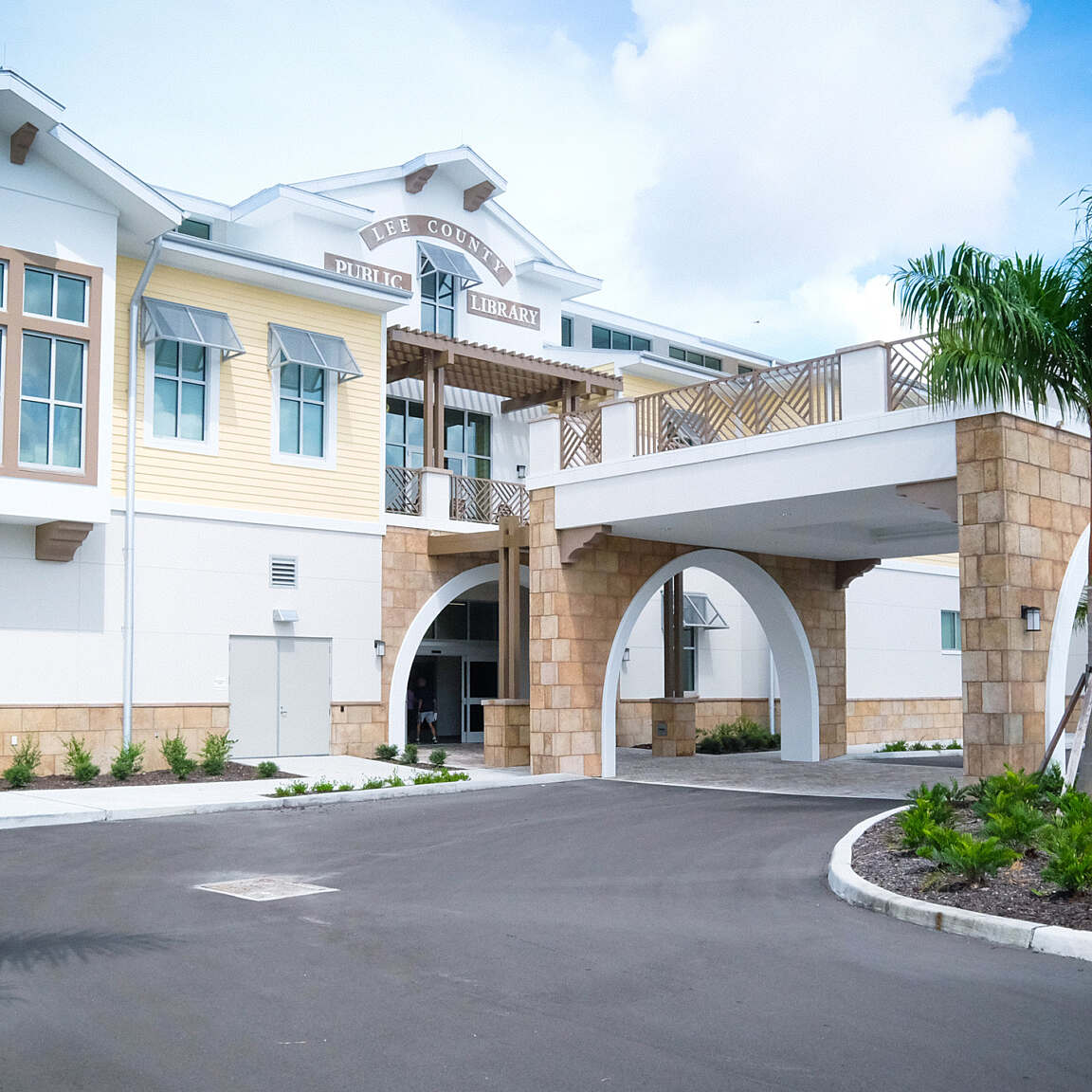 The newly designed library is a major community asset not only by its function but by becoming a civic destination for multiple purposes. It includes technologies for patron of all ages, indoor and outdoor meeting spaces with conference rooms for larger community needs. Located in the Bonita Springs Historic area, the 2-story library is approximately 31,000 SF.