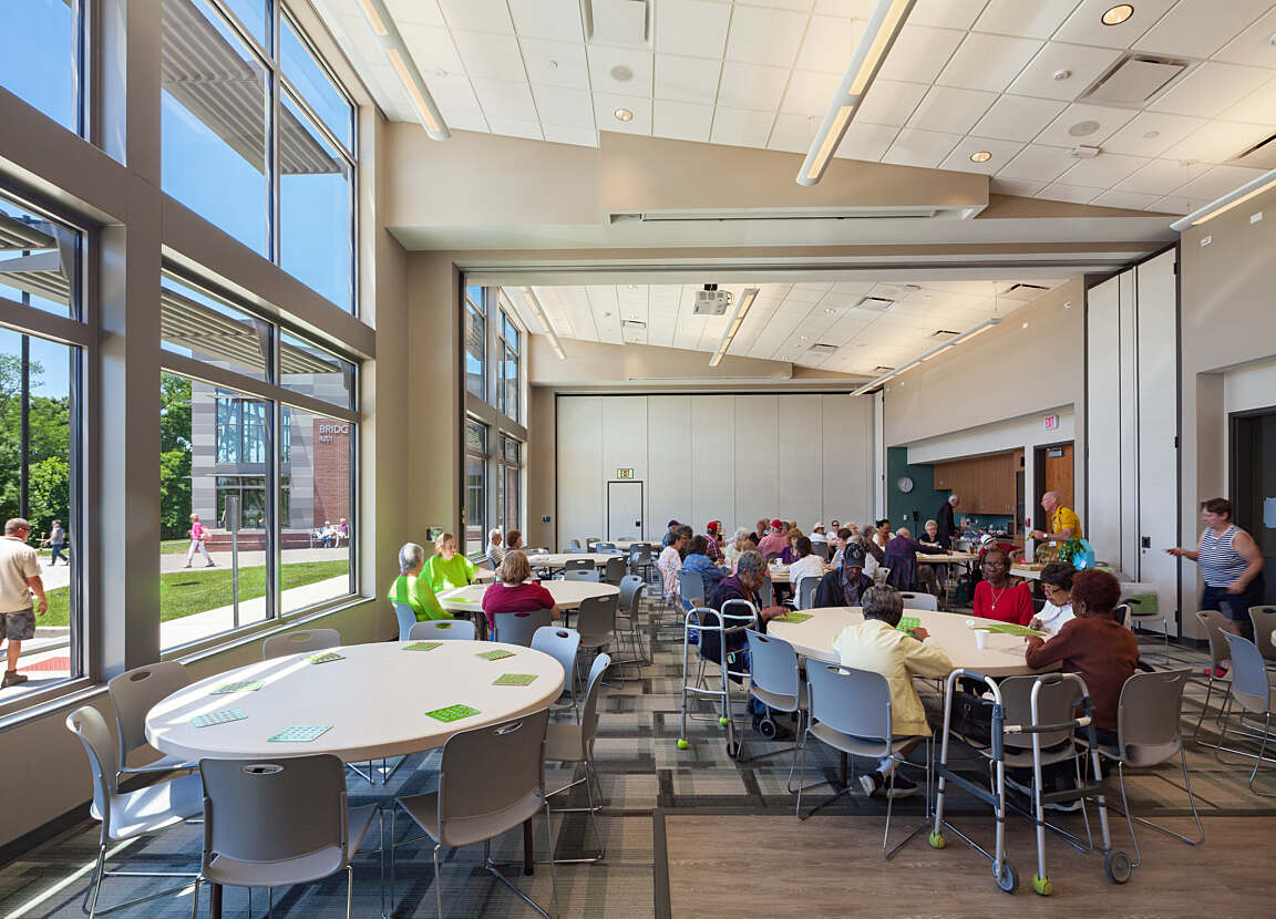 The Bridgeton Recreation Center replaces an outdated 1980s facility with a modern, state-of-the-art space designed to serve the diverse needs of the community. Positioned northwest of the former building, the new center was strategically placed to allow continued use of the old facility during construction. The recreation center now offers a comprehensive range of amenities that promote health, wellness, and community engagement, enhancing the overall experience for visitors of all ages.