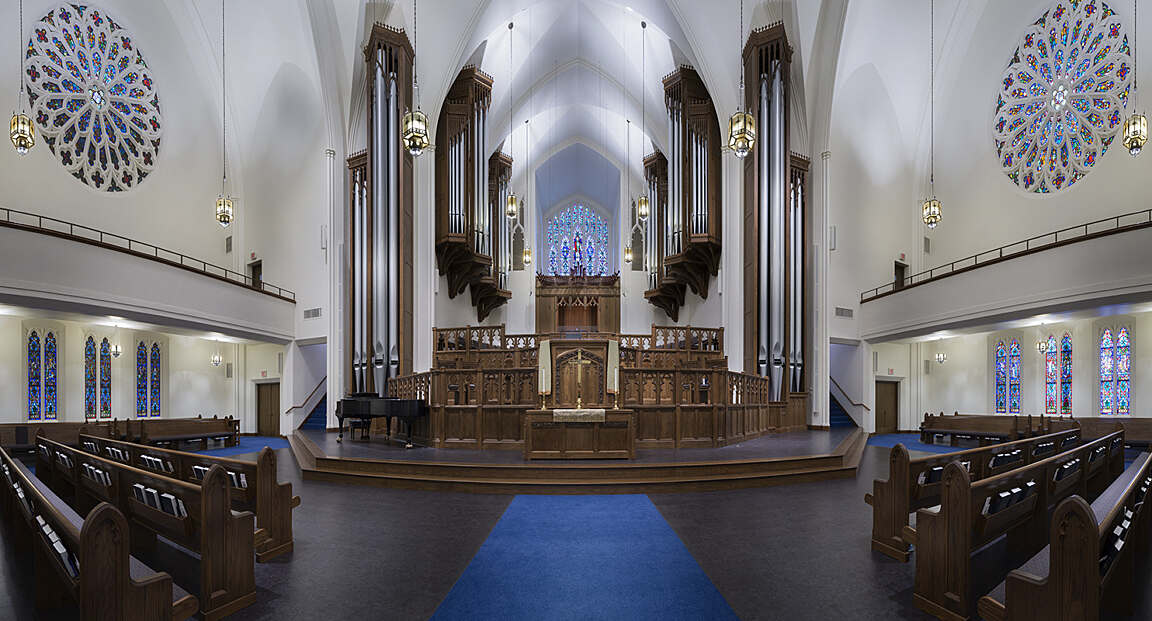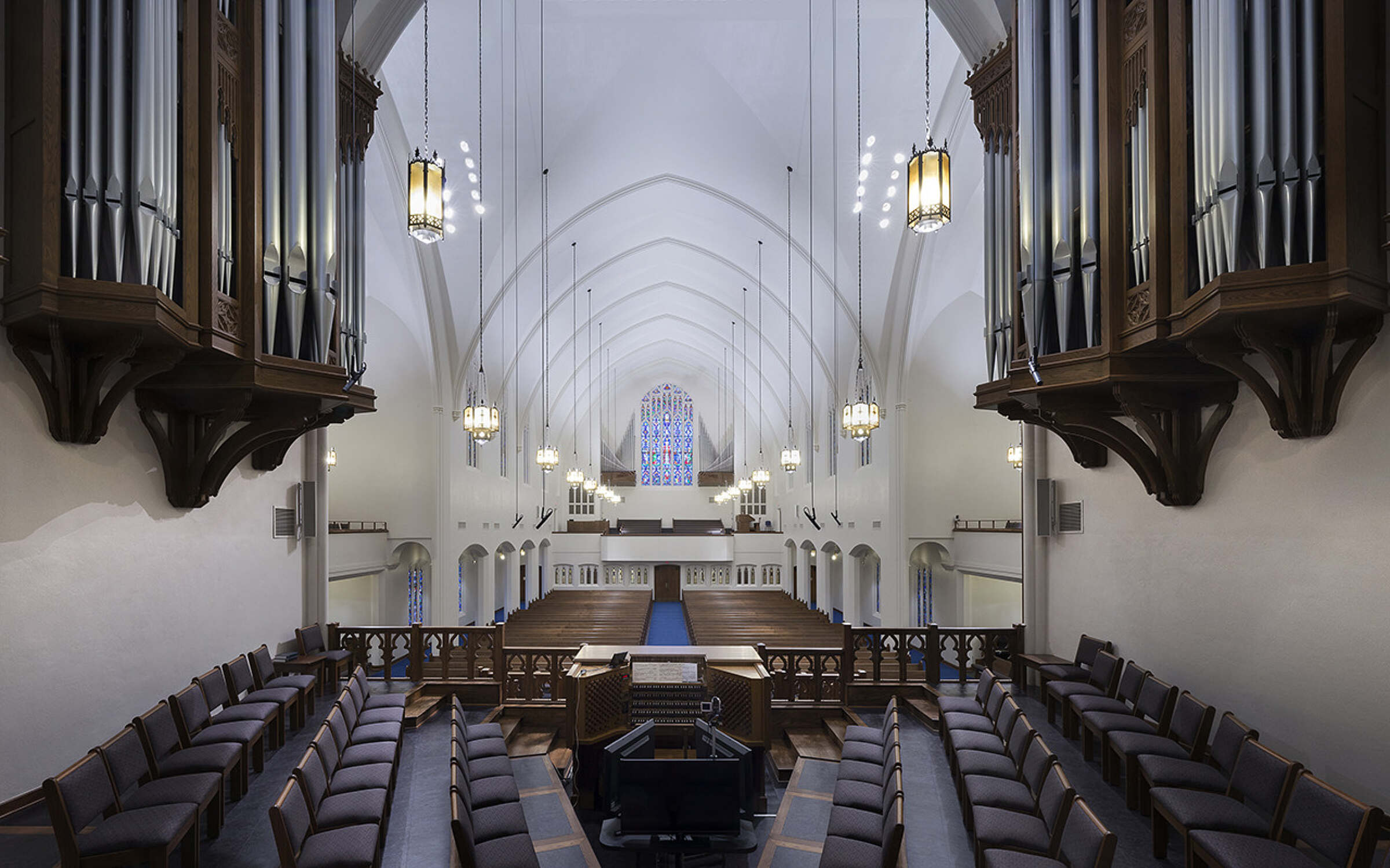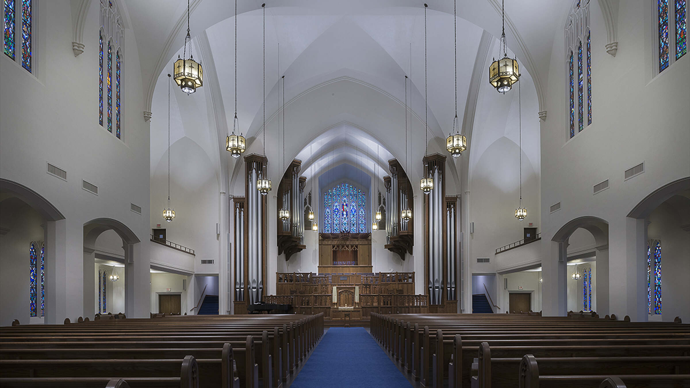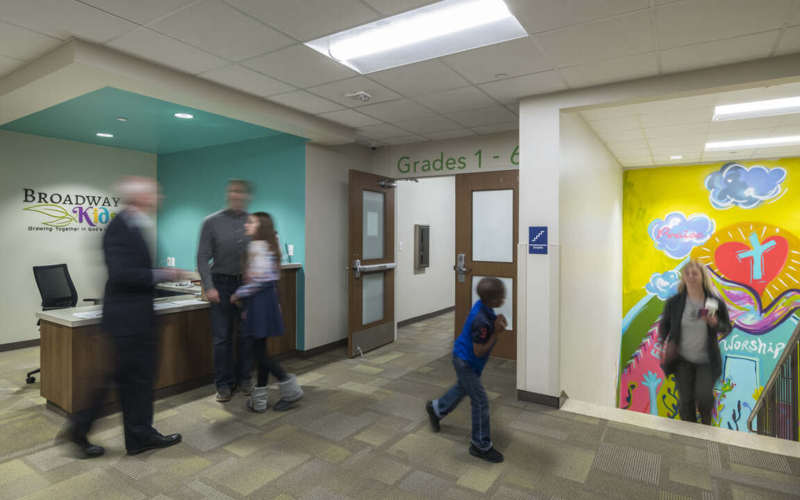 Renovations at Broadway Baptist Church encompassed a comprehensive revitalization effort, addressing the sanctuary, updating worship and gathering spaces, ministry area for children, and much more. The renovation also included organ pipe re-installation, terrazzo floor replacement, interior refinishing, and the installation of historically accurate doors and hardware. Acoustic enhancements, such as speaker system adjustments and LED lighting retrofitting, were implemented, alongside the installation of life safety features like exit lighting and a voice-activated fire alarm system.