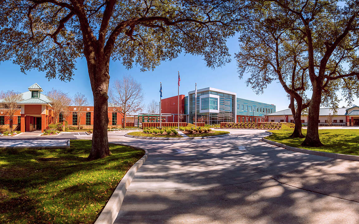 Nestled between two existing buildings on the Cajun Industries campus, a new office building provides much-needed space as well as a focal point for the fast-growing company. To create harmony with the older spaces, the new building utilizes a metal rain screen system that references and helps to incorporate the campus’ existing brickwork and green standing-seam metal roofs.