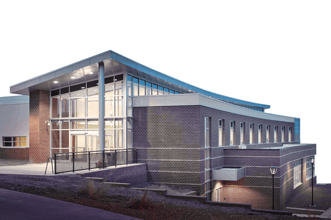 Embedded in a hillside at the entrance to Casper College, the concave School of Music symbolically embraces visitors while the luminous roof monitor artistically communicates the building’s academic function. Internally, these two architectural movements define the building’s main lobby and concourse and offer an abundance of natural daylight.