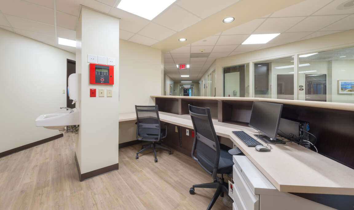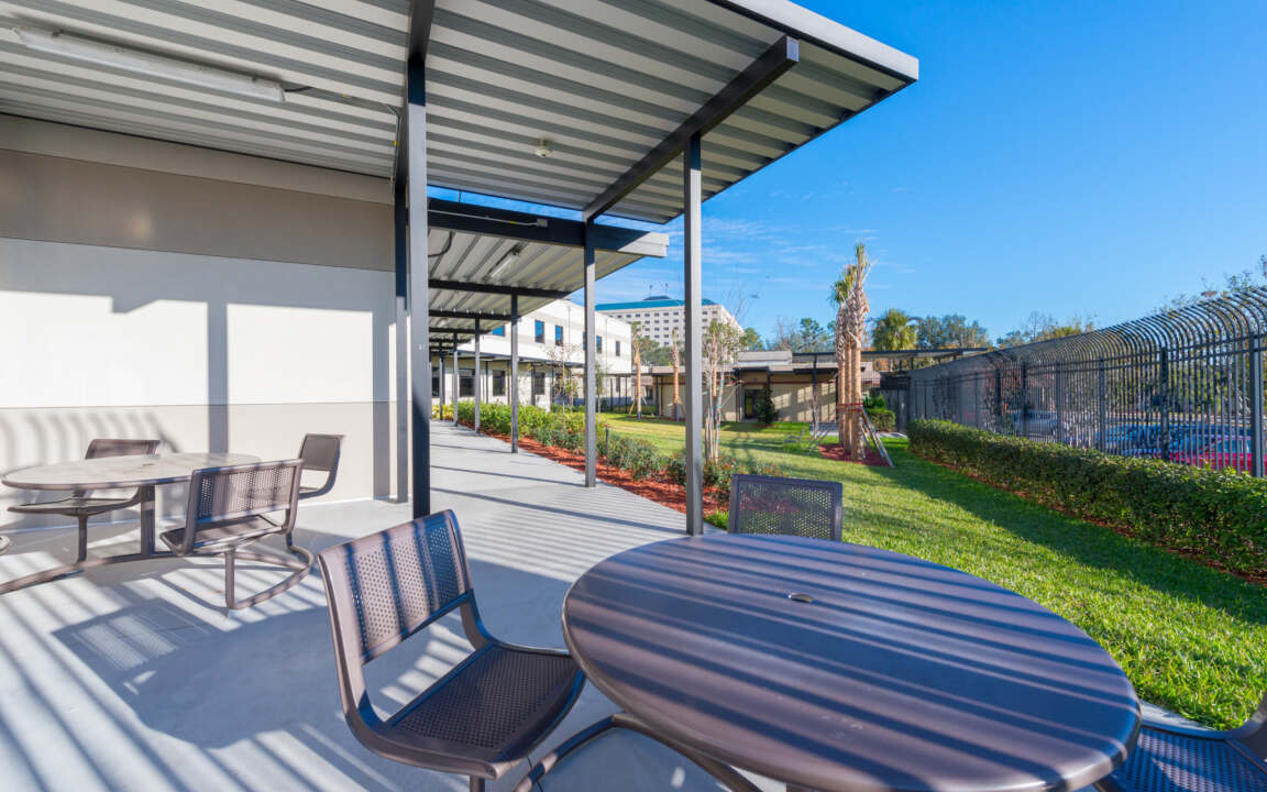 The design of the new building emphasizes accessibility and safety for all patients, particularly mature adults. Half of the rooms on each floor are oversized to accommodate the specific needs of this population, ensuring a comfortable and functional space for those requiring additional assistance. Additionally, the building addition has been constructed to meet stringent code requirements for building hardening and disaster preparedness. Positioned above the 100-year flood plain and hurricane stage III surge level (per FBC 419), the facility ensures resilience in the face of natural disasters, providing peace of mind to patients, staff, and visitors alike.