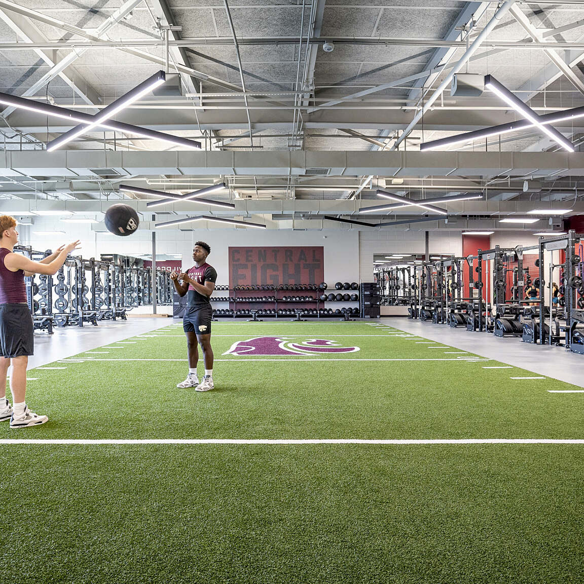 Central High School’s athletic renovations involve enhancing the existing school campus to elevate their athletic program. The upcoming Softball Field house will feature a locker room, coaches’ office, meeting space, and batting cages for the Central High School softball team. The weight room will undergo renovations, including the transformation of the wrestling room into a student athletic meeting area. Our firm has prioritized improving the drainage of the Central High School’s football field and installing a new turf playing surface.