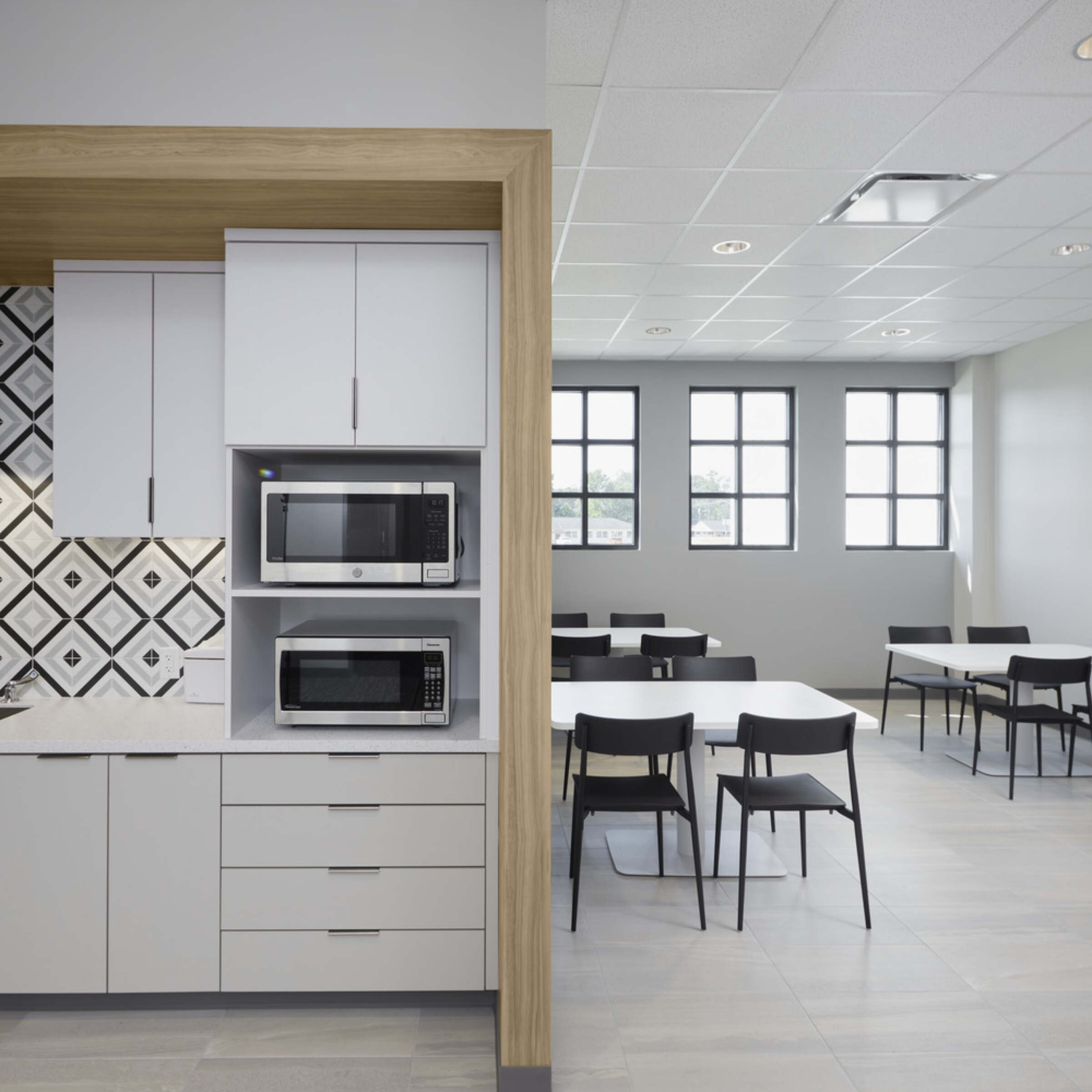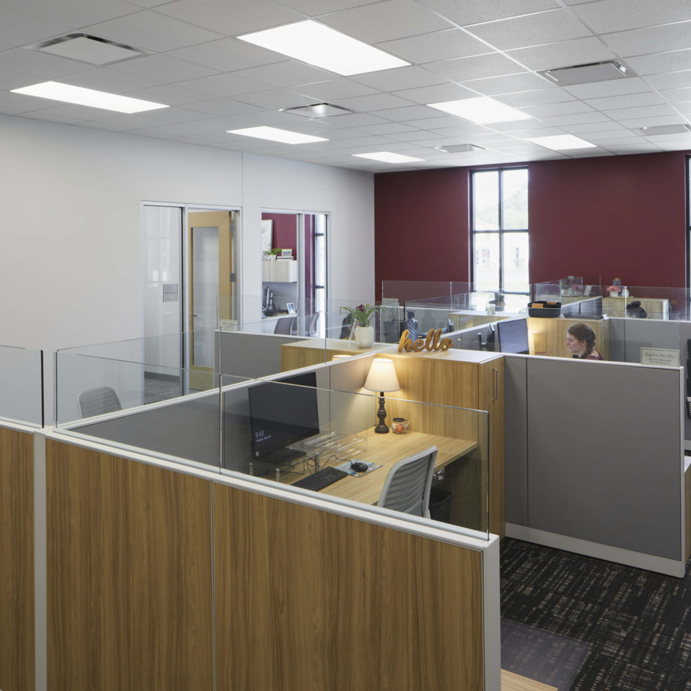 Designed with wood finishes and Central’s signature color, the School Board's administrative lobby is a bright and warm welcome for visitors and staff.