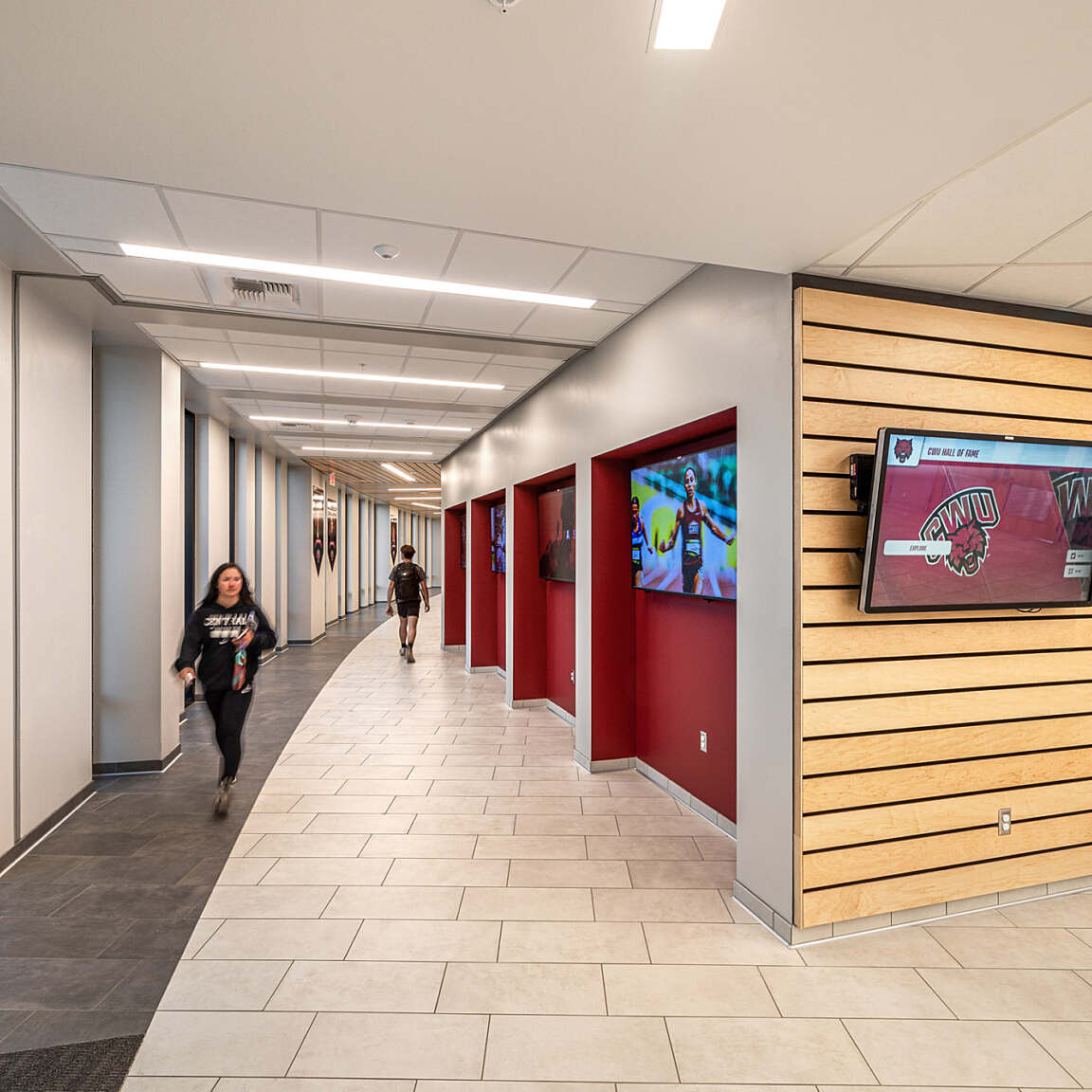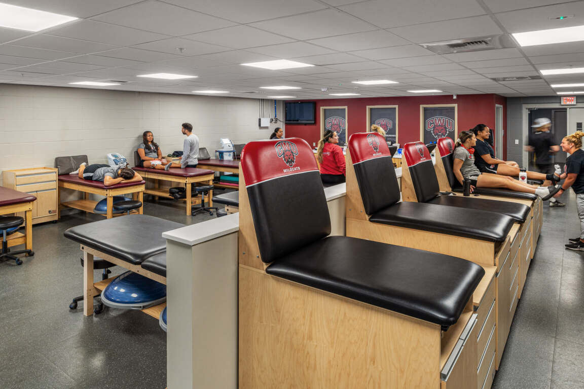 For Athletics, the project addressed critical needs for upgraded athletic spaces and expanded capacity. Improvements include increased seating in the Performance Gym, new team locker rooms, a dedicated weight room, an expanded training area, and additional practice spaces. Together, these enhancements provide student-athletes with the facilities they need to train, compete, and succeed. The upgraded Nicholson Pavilion now serves as a revitalized hub for health education and athletic excellence on campus, reinforcing Central Washington University’s commitment to holistic student development.