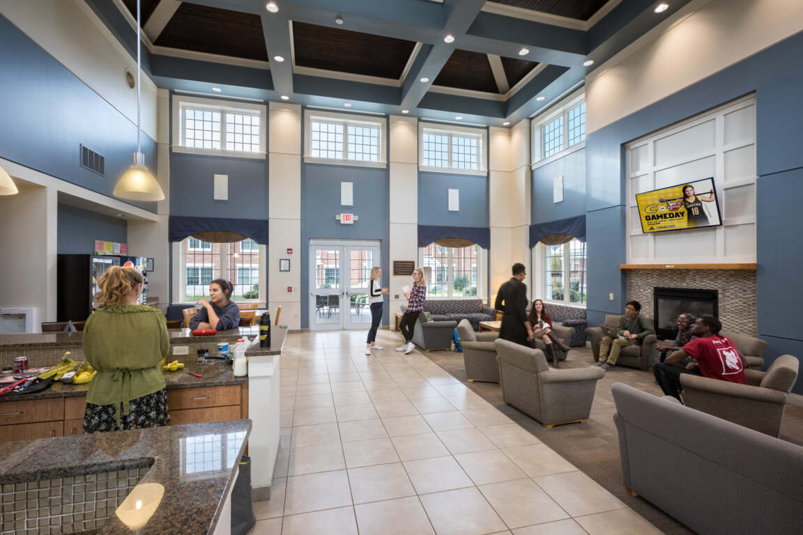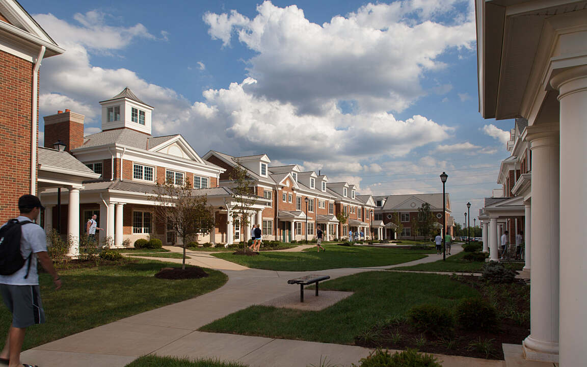 Centre College engaged our firm to design a new residential community for upper-level students. At A. Eugene Brockman Residential Commons, a townhouse-style setup eases the transition from freshman housing into senior and post-graduation apartment living.