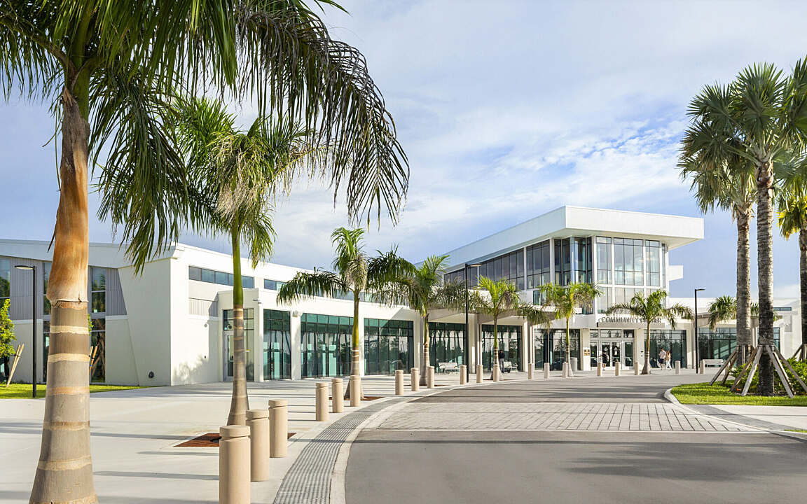 The City of Doral Recreation and Aquatics Center is a key feature of the Doral Central Park development, designed to provide a diverse range of recreational and athletic opportunities. The park is thoughtfully organized with distinct activity zones, creating a seamless flow between amenities. A grand entry drive leads to a central plaza with a fountain, serving as a welcoming focal point for visitors.