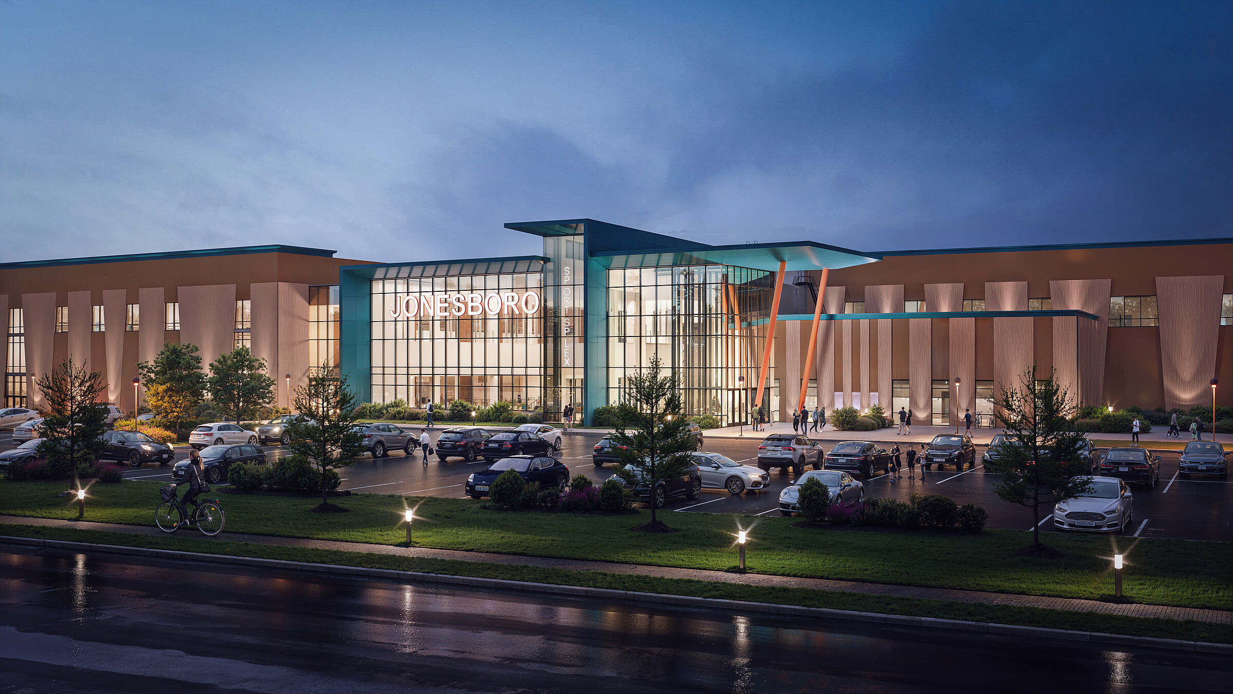 Located on a 20-acre site near City Hall, the WREC Center features a modern architectural design with extensive glazing that creates a bright and welcoming atmosphere. The facility extends beyond its indoor amenities with outdoor fitness areas, a community porch, and a fitness roof terrace, offering a variety of spaces for recreation and social engagement.