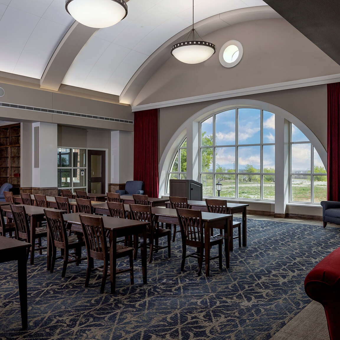 The Covenant Classical School incorporates the addition to the existing two-story facility for 9th - 12th graders. A standout feature of the school is its thoughtfully designed library, which integrates traditional shelving and study spaces, along with specialized areas for students to conduct thesis presentations. The building includes classrooms, collaborative spaces, and multi-purpose areas, creating a well-rounded environment for academic activities. With a strategic layout and purposeful design, the school's expansion significantly enhances the overall learning experience for high school students.