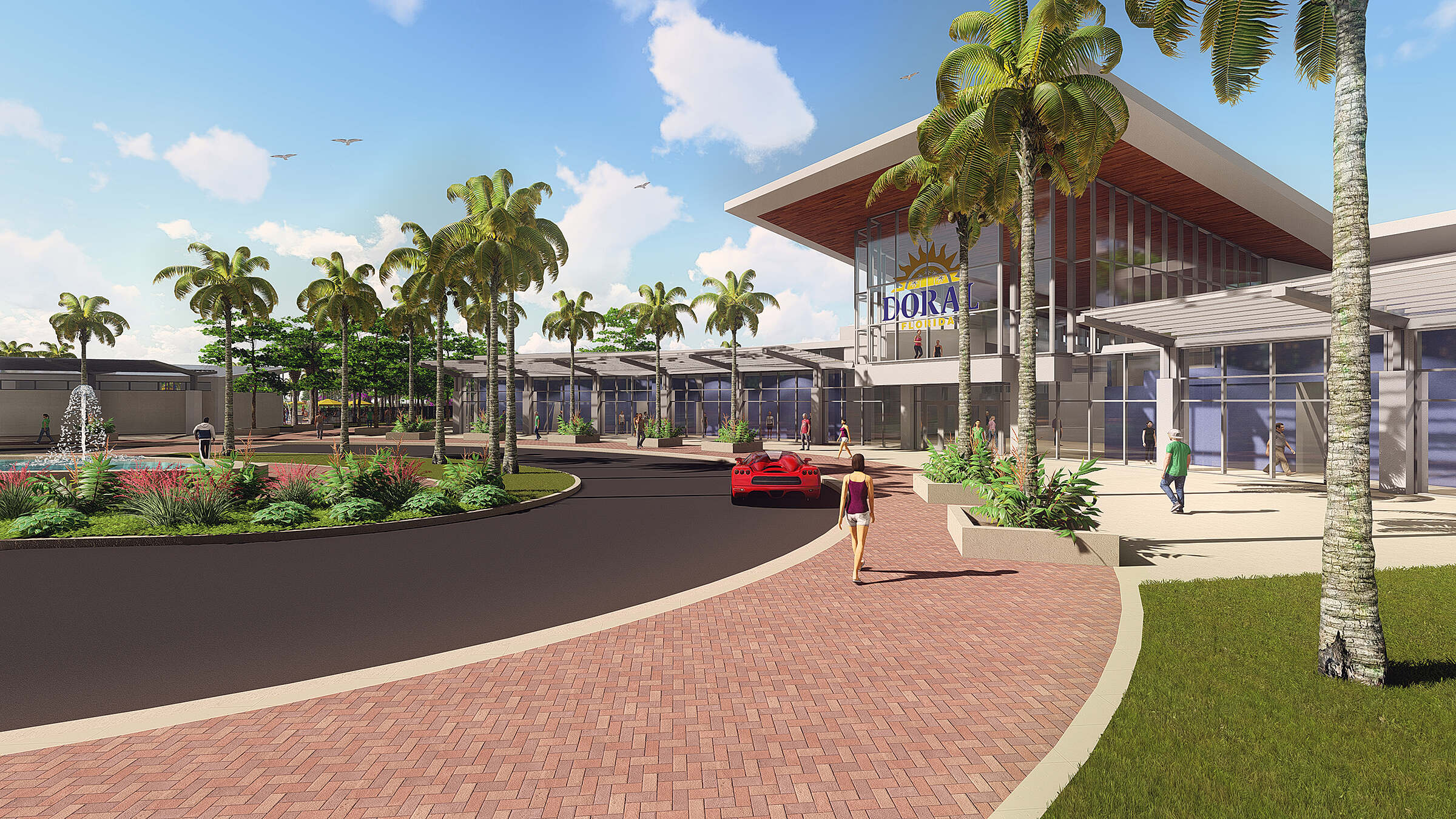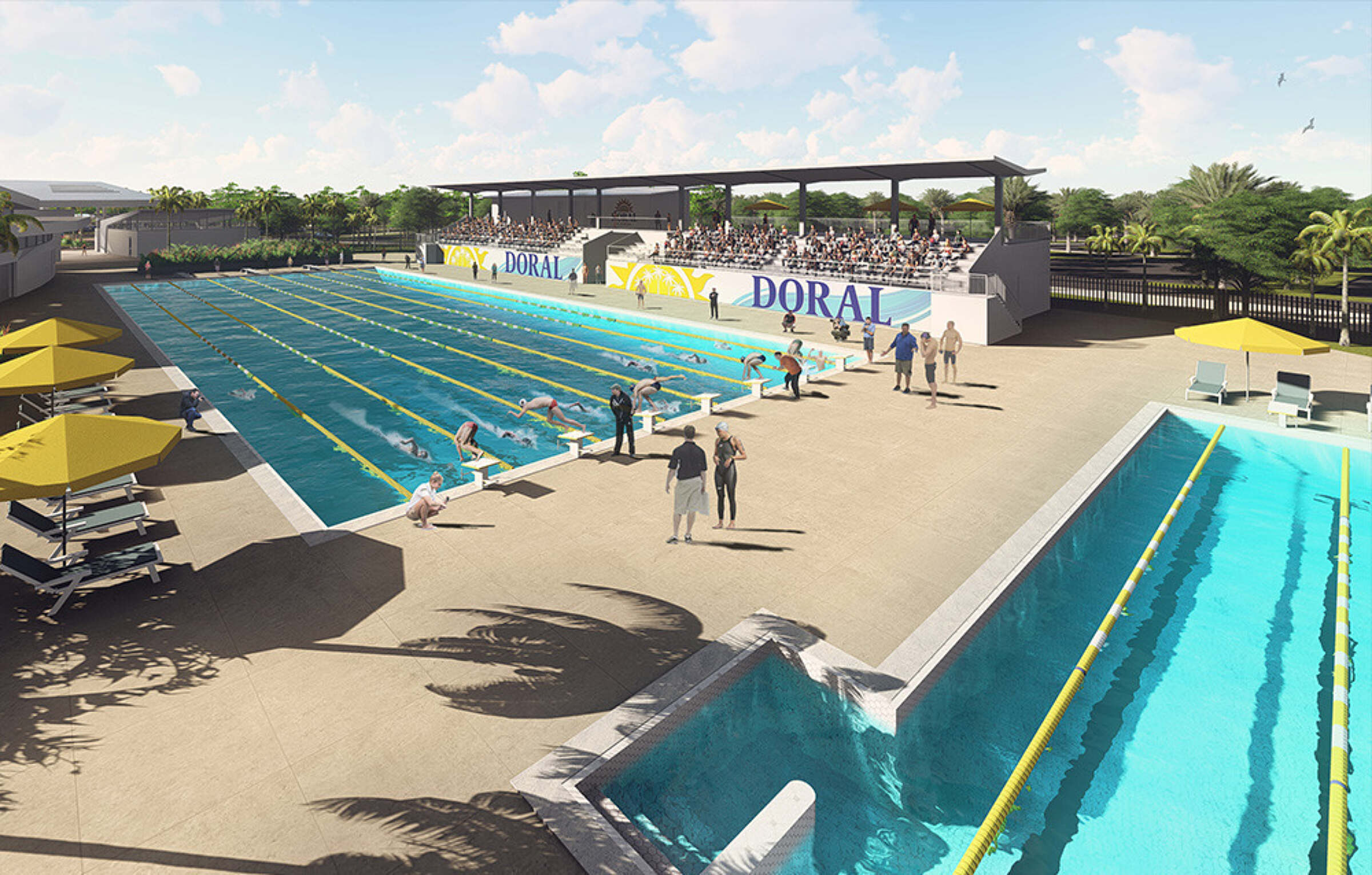 The City of Doral Recreation and Aquatics Center is a key feature of the Doral Central Park development, designed to provide a diverse range of recreational and athletic opportunities. The park is thoughtfully organized with distinct activity zones, creating a seamless flow between amenities. A grand entry drive leads to a central plaza with a fountain, serving as a welcoming focal point for visitors.