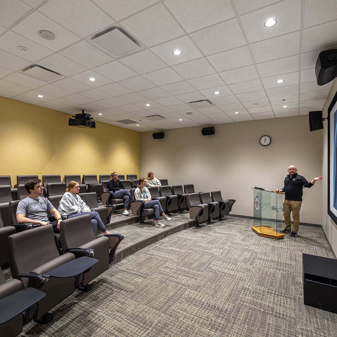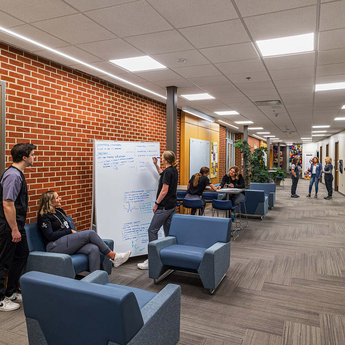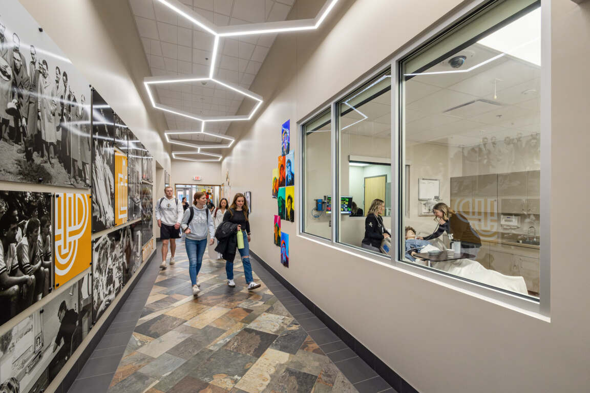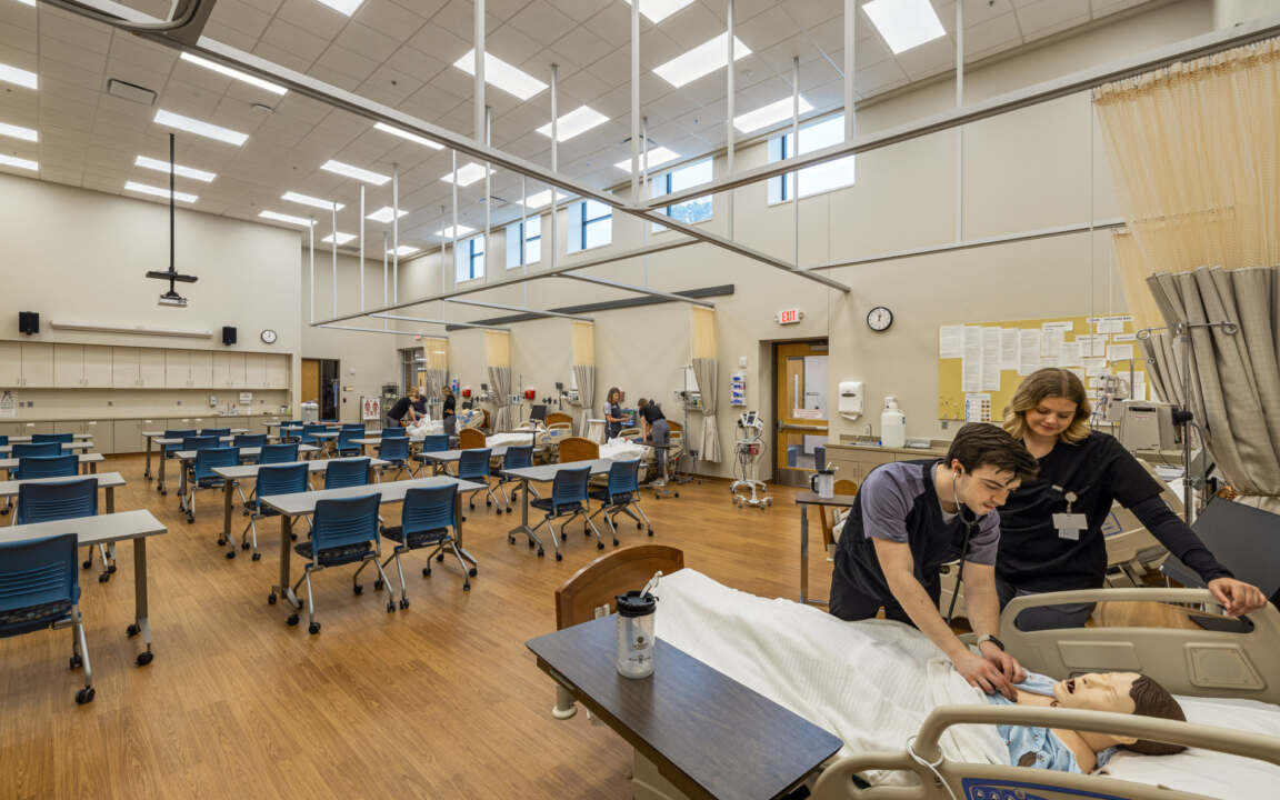 The Carl and Gloria Zylstra Nursing Education Center was designed to provide Dordt University nursing students with a modern, hands-on learning environment that supports real-world clinical training. The facility includes a large classroom, a skills lab, two simulation labs with control and debrief rooms, and faculty office space—all thoughtfully planned to support both individual instruction and group collaboration.