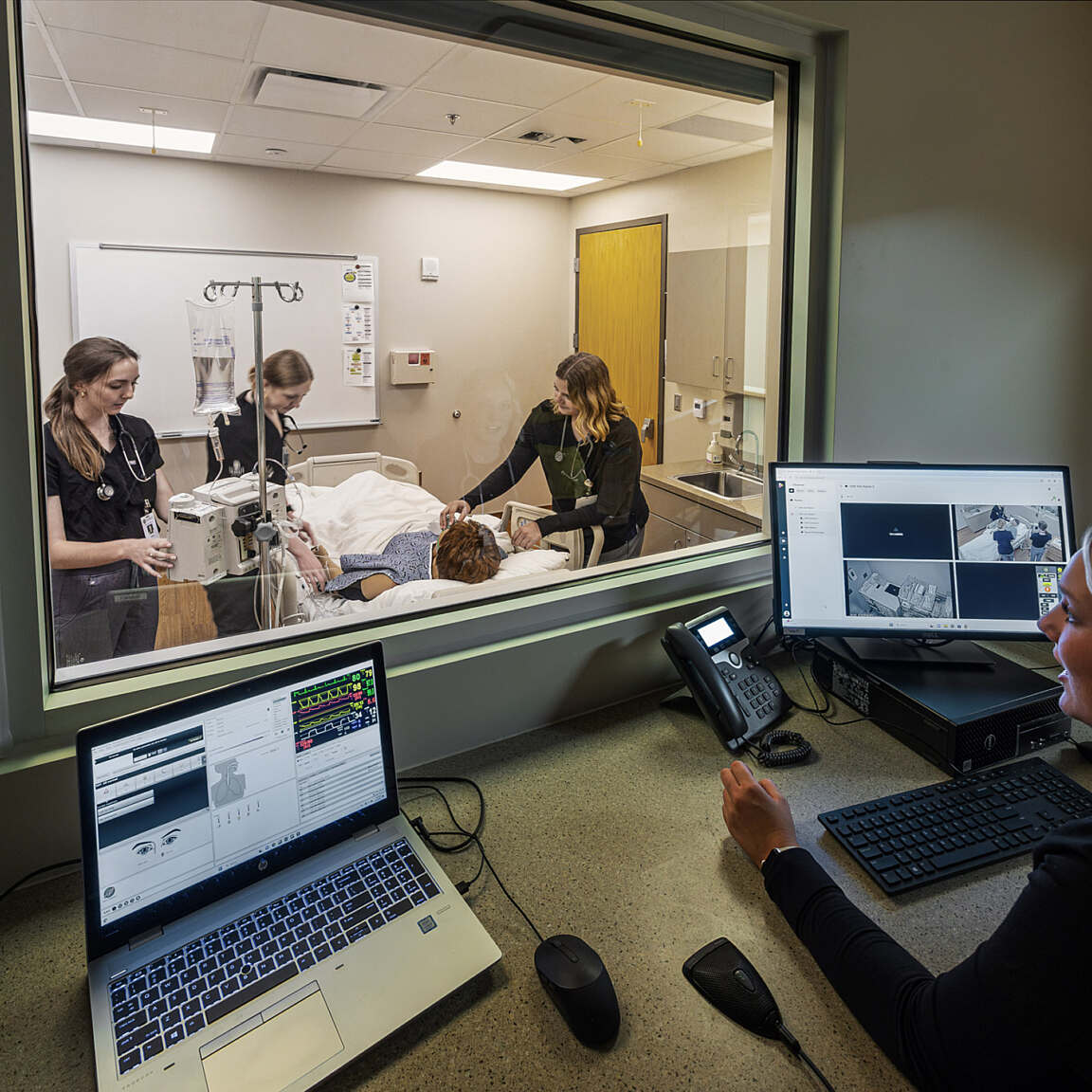 The Nursing Education Center is equipped with advanced technology that supports hands-on learning and clinical skill development. Students train in simulation labs using high-fidelity manikins, guided by instructors from adjacent control rooms to replicate real-world medical scenarios in a safe and supportive environment.