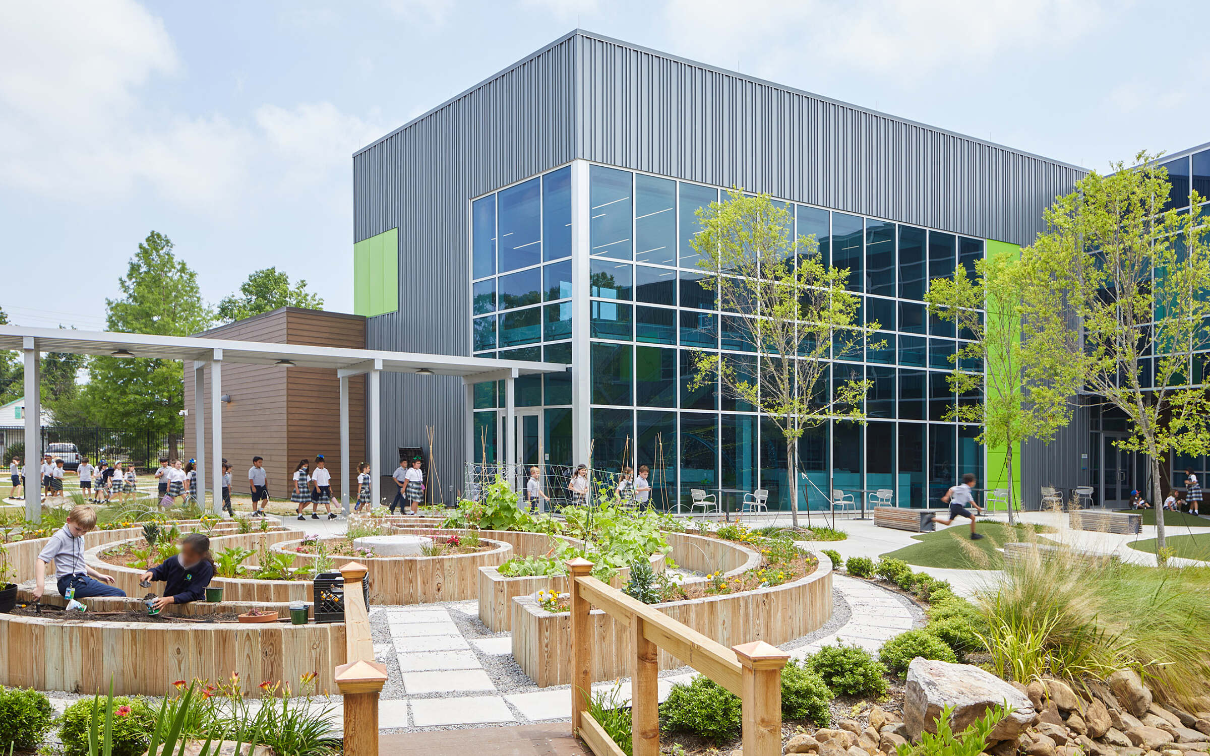 The school meets a need for more STEM (Science, Technology, Engineering and Math) education in Louisiana. It features five learning communities. Each learning community is identifiable with distinct colors and wayfinding signage that give a neighborhood-like sense of identity between the differing grade levels of the school. Classrooms within the communities are organized in groupings of the same grade level to foster collaboration between different classes throughout the school day.