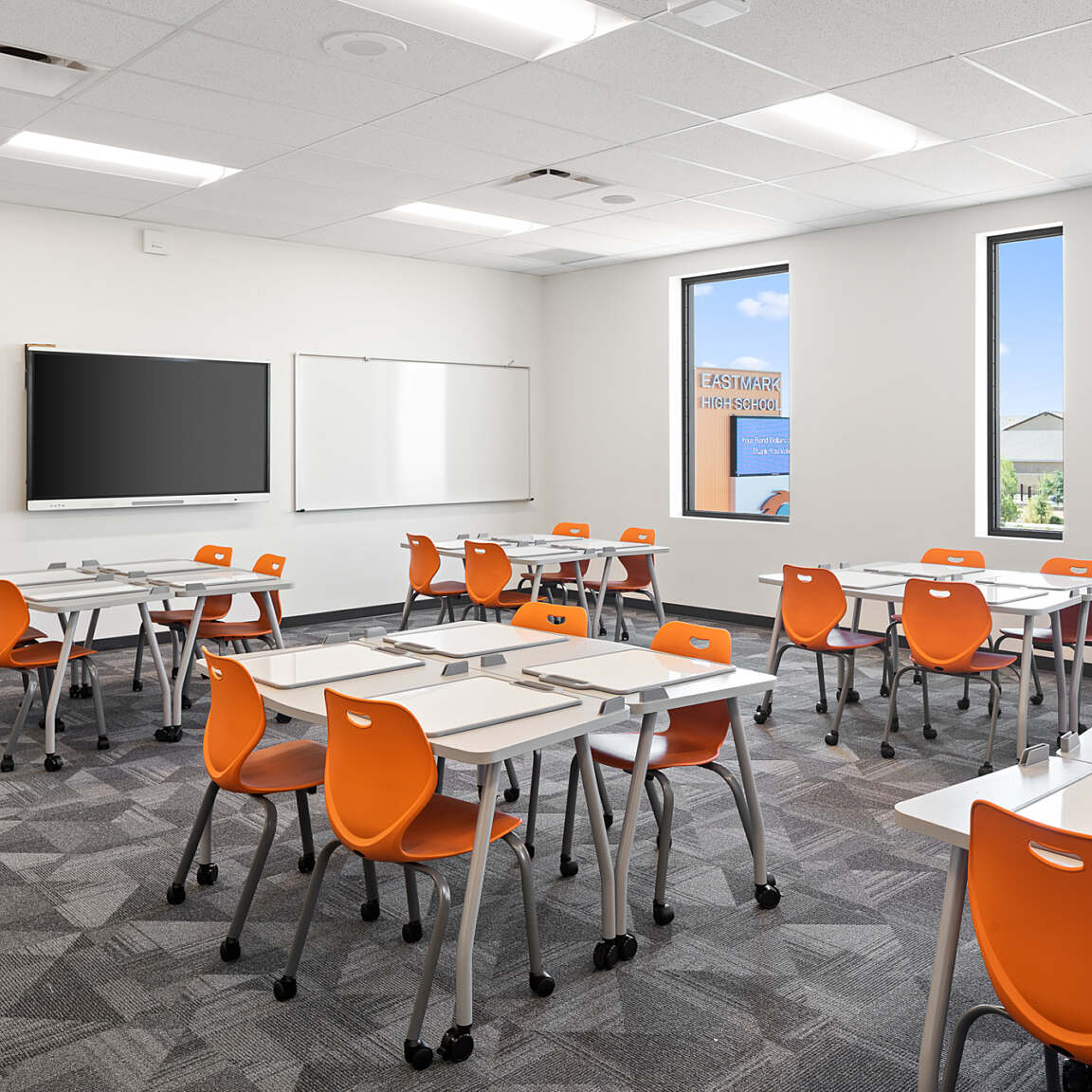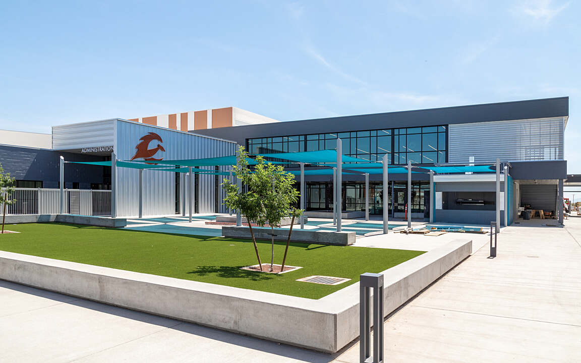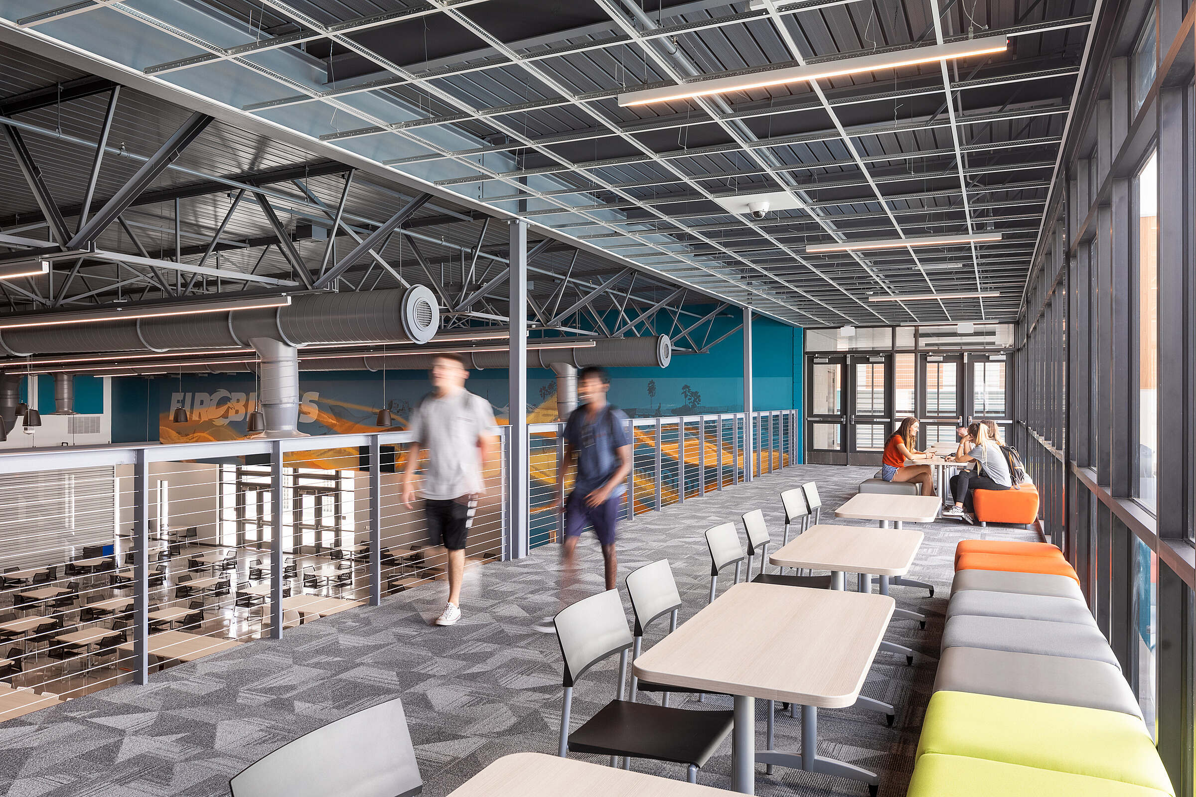 Eastmark High School represents a forward-thinking approach to modern education, adapting to the demands of the Fourth Industrial Revolution where emerging careers require new skills and innovative learning environments. The design of Eastmark blends traditional academic structures with progressive concepts, focusing on fostering collaboration, creativity, critical thinking, and communication. The school accommodates up to 2,800 students, including a Junior High School designed for vertical alignment, ensuring a smooth educational transition. This unique approach encourages a deeper sense of community while preparing students for the challenges of an ever-evolving workforce.