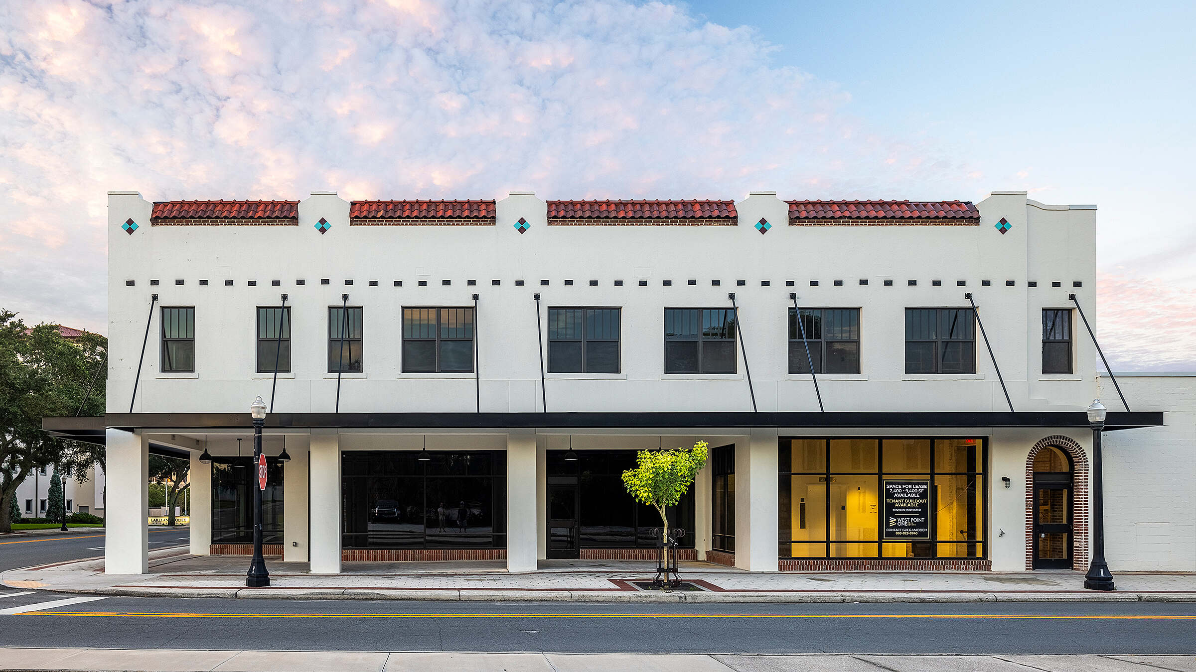 The building was originally designed in the Mediterranean Revival style, and that look played a big role in shaping the renovation. Wherever possible, original features were repaired instead of replaced to maintain the building’s character. When updates were needed, the new materials were chosen to closely match the old ones in look and feel. The storefront was redesigned using aluminum framing with brick and glass details, recessed to allow for outdoor dining while still fitting in with the historic style. The exterior was repainted, and the original barrel and glazed roof tiles were carefully preserved.