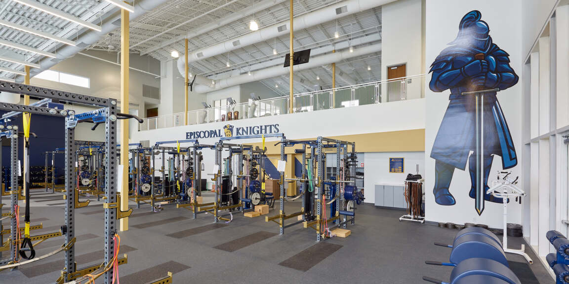 Focused on developing spirit, mind and body, the state-of-the-art Episcopal High School Field House strengthens student-athletes for competition and encourages all students to build the foundation for a lifetime of wellness. More than 80% of Episcopal High School’s middle and upper school students participate in sports (and multiple teams have advanced to state-level competitions), and the Field House is a key symbol of success, persistence, determination, teamwork and excellence.