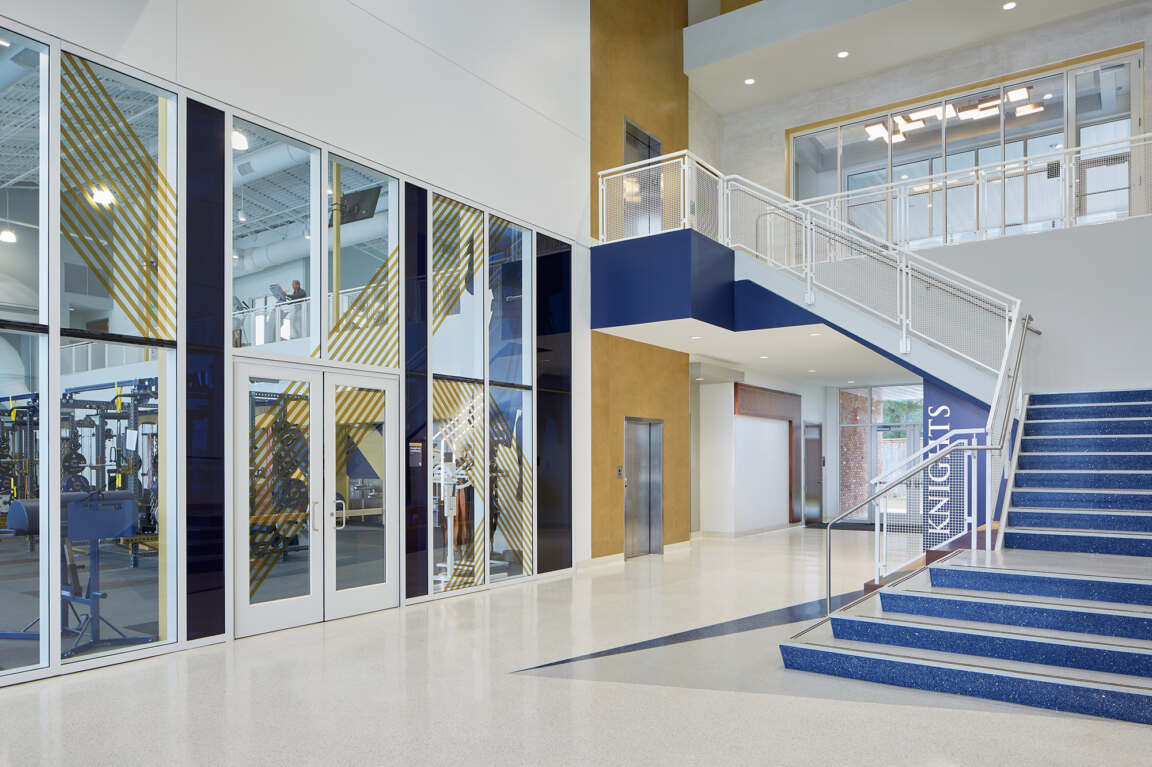 Additionally, Episcopal High School strives to serve the whole child by maintaining a focus on spirituality, academics and the arts. Hence, the Field House helps students excel in multiple arenas. Programmed spaces include multifunctional classrooms, a weight training and exercise area, a nutrition station, sports medicine spaces, large team locker rooms, coaching staff offices, a conference room, public event restrooms and a concession stand.
