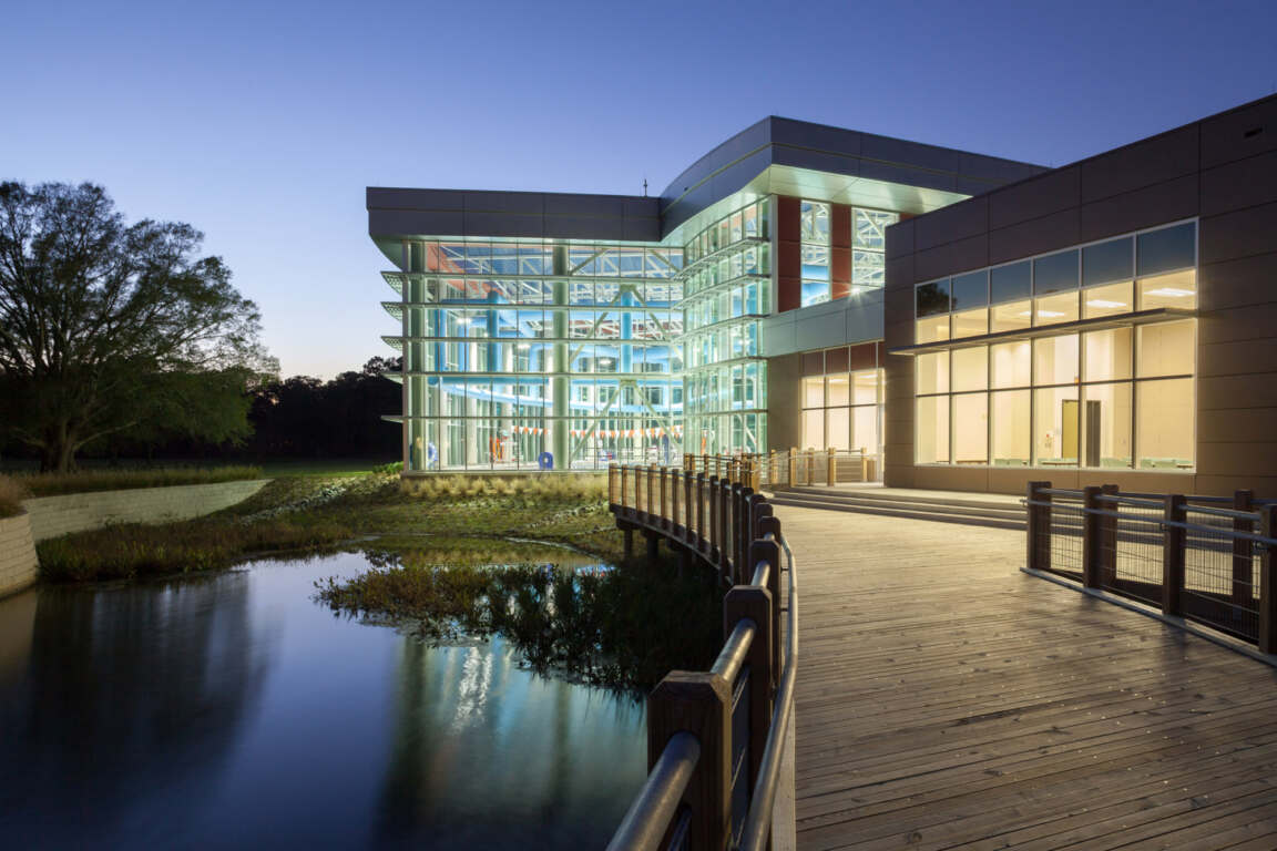 Additional features include a group exercise room, lounge, multipurpose room, childcare area, concession stand, and locker rooms with saunas. Outdoor amenities include a planned fishing pond, further expanding recreational opportunities. The center’s thoughtful design ensures a welcoming and adaptable space for a variety of activities.