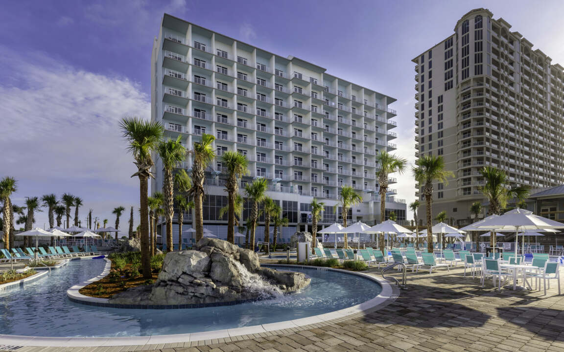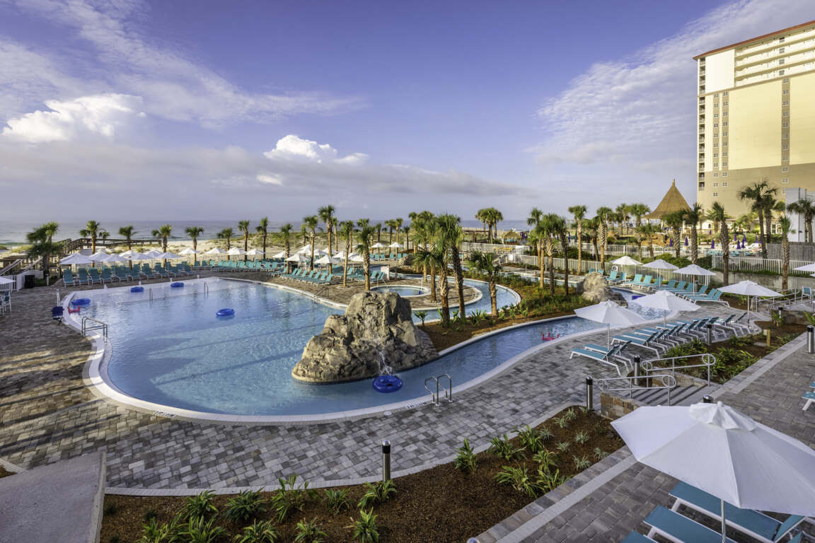 Adorned in tropical landscaping, the lazy river provides an ideal hang out for guests of all ages, seamlessly integrating playful design elements into the overall resort experience.