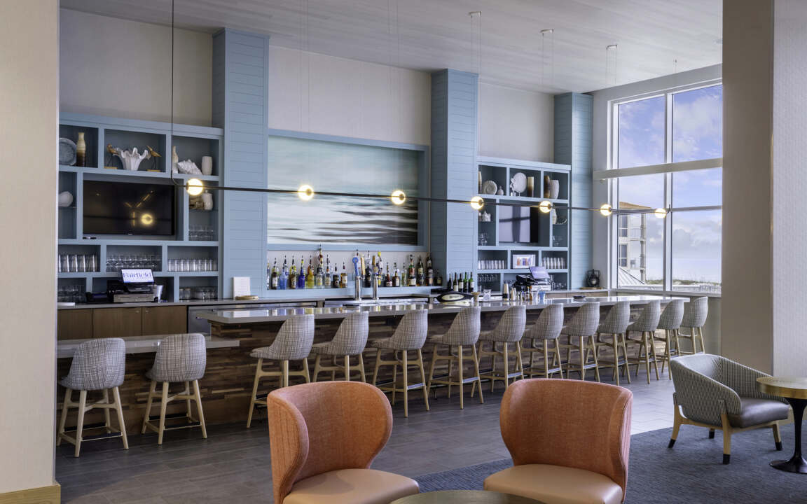 Ranked top 5 best new hotels across the US by USA Today, the 16 Via De Luna Hotel is a beacon of contemporary architectural sophistication. Its white façade, adorned with subtle blue accents, embraces a modern aesthetic harmonizing effortlessly with coastal surroundings. As guests step inside, they are warmly welcomed into a capacious, high-end lobby, embodying the hotel’s commitment to providing a serene and upscale experience. This expansive space, marked by clean lines and curated design, sets the stage for the unfolding architectural narrative throughout the hotel.