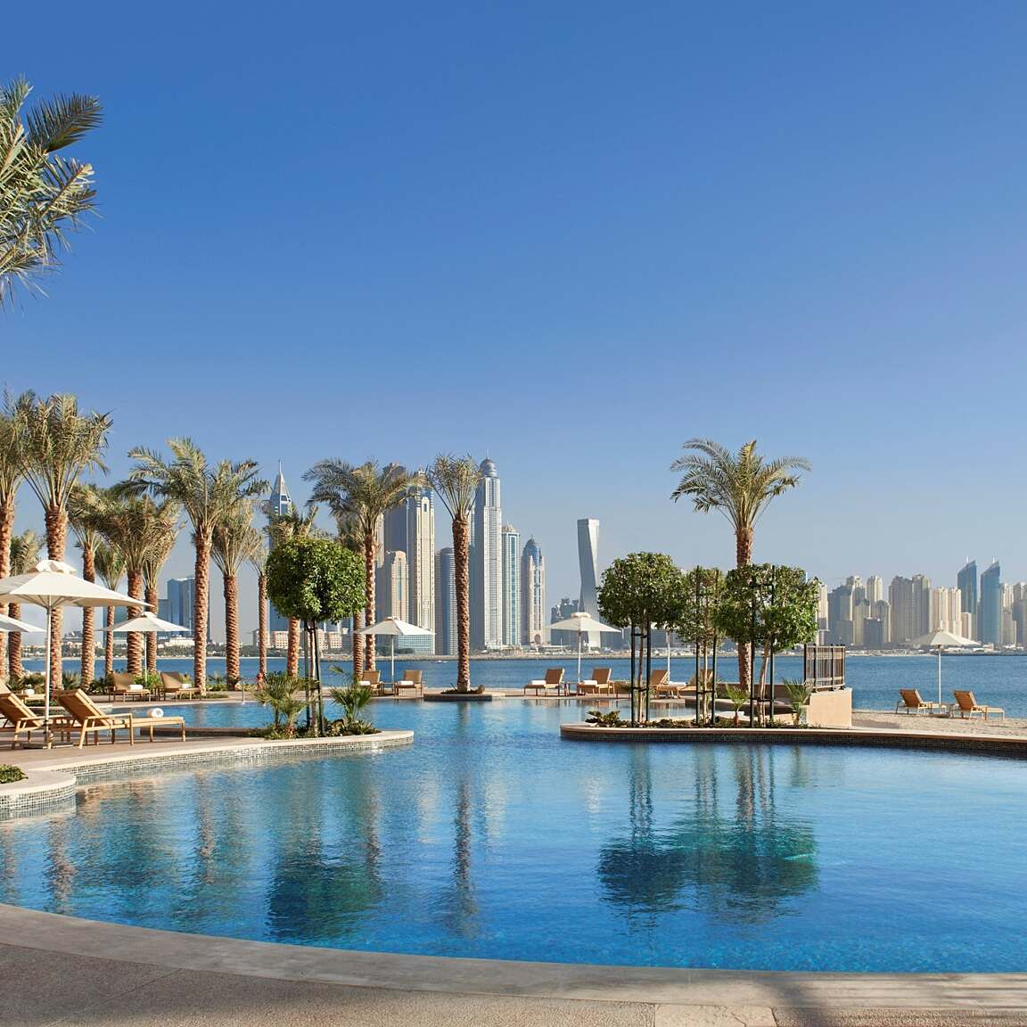 Catering to guests seeking relaxation and rejuvenation, Fairmont The Palm offers a comprehensive suite of amenities. The renowned Willow Stream Spa features 13 treatment rooms, providing a holistic wellness experience inspired by the natural surroundings. Outdoor leisure facilities include four swimming pools, a private 450-meter-long beach, and a beach club equipped with health and fitness facilities. For families, the resort offers dedicated family and children’s pools, as well as a comprehensive children’s activity center with age-appropriate programs. Additionally, guests can enjoy a variety of dining options with sea, garden, or pool views, making Fairmont The Palm a perfect playground on one of Dubai’s most exclusive beachfront properties.
