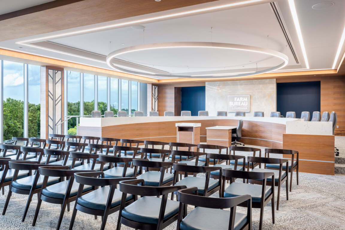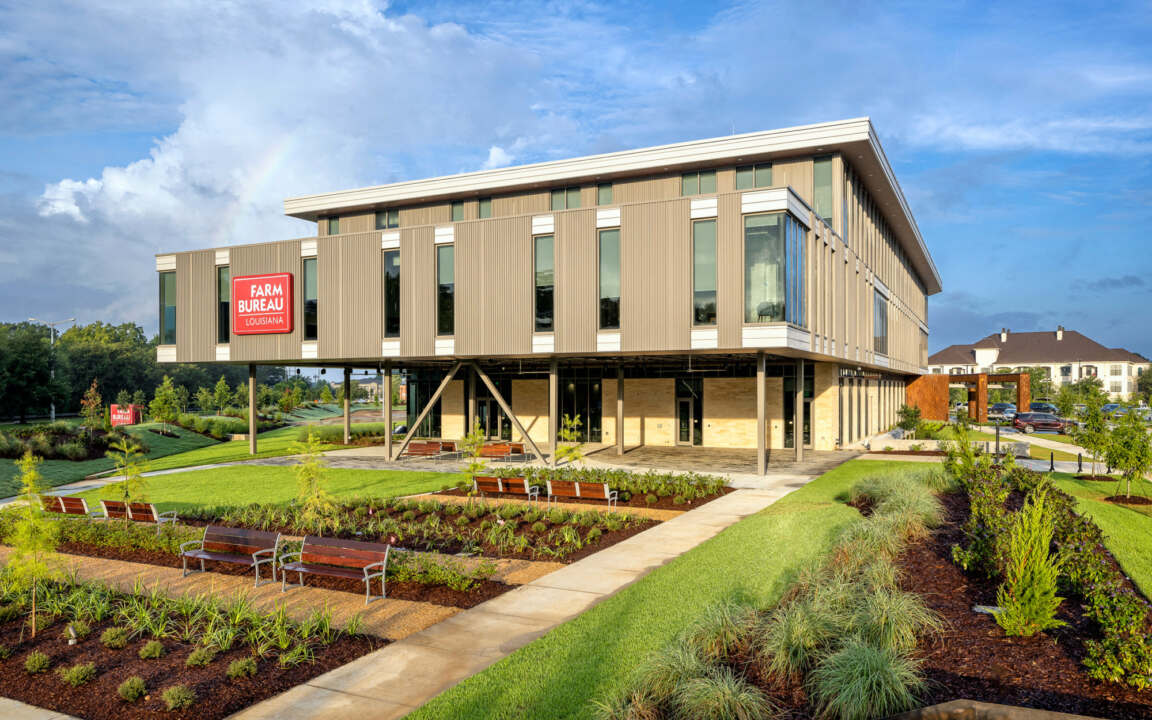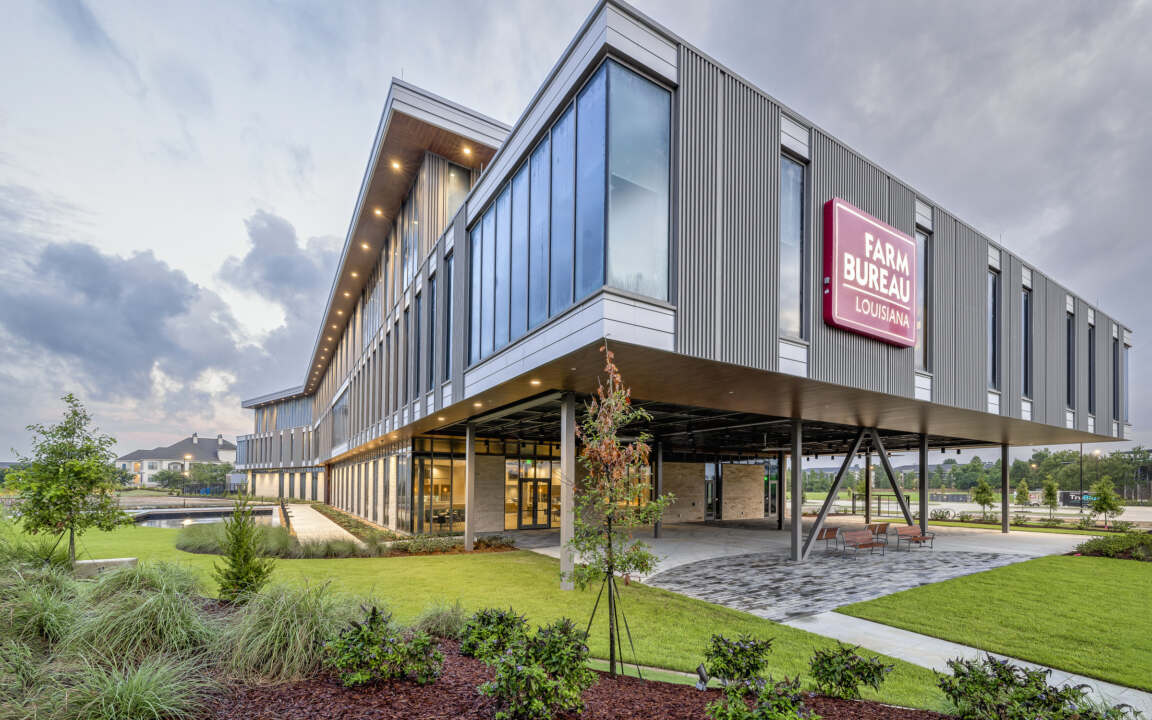 The visually striking Louisiana Farm Bureau Corporate Headquarters building immediately communicates the organization’s values and focus, while offering a modern, technology-forward venue for hosting critical conversations about the future of agriculture.