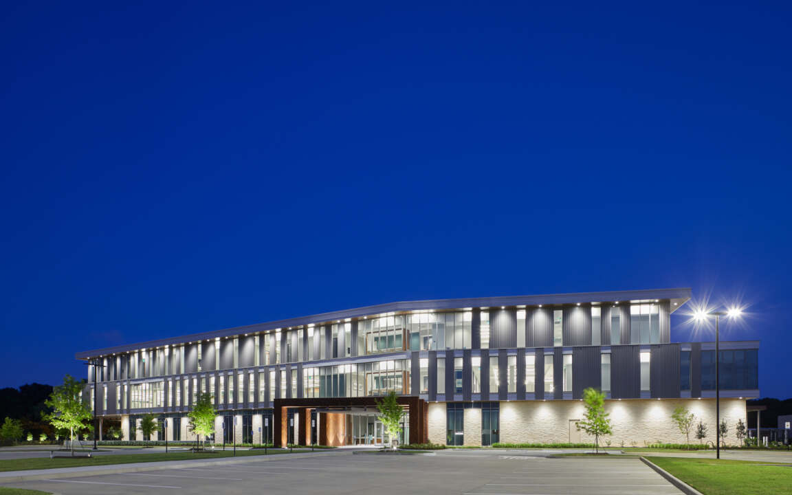 Through its holistic, immersive design approach, the design team delivered a broad, three-story, angled concept that (capitalizing on a unique site) offers 360 degrees of visibility. The structure perfectly addresses the client’s spatial and technology needs today, while accommodating future flexibility.