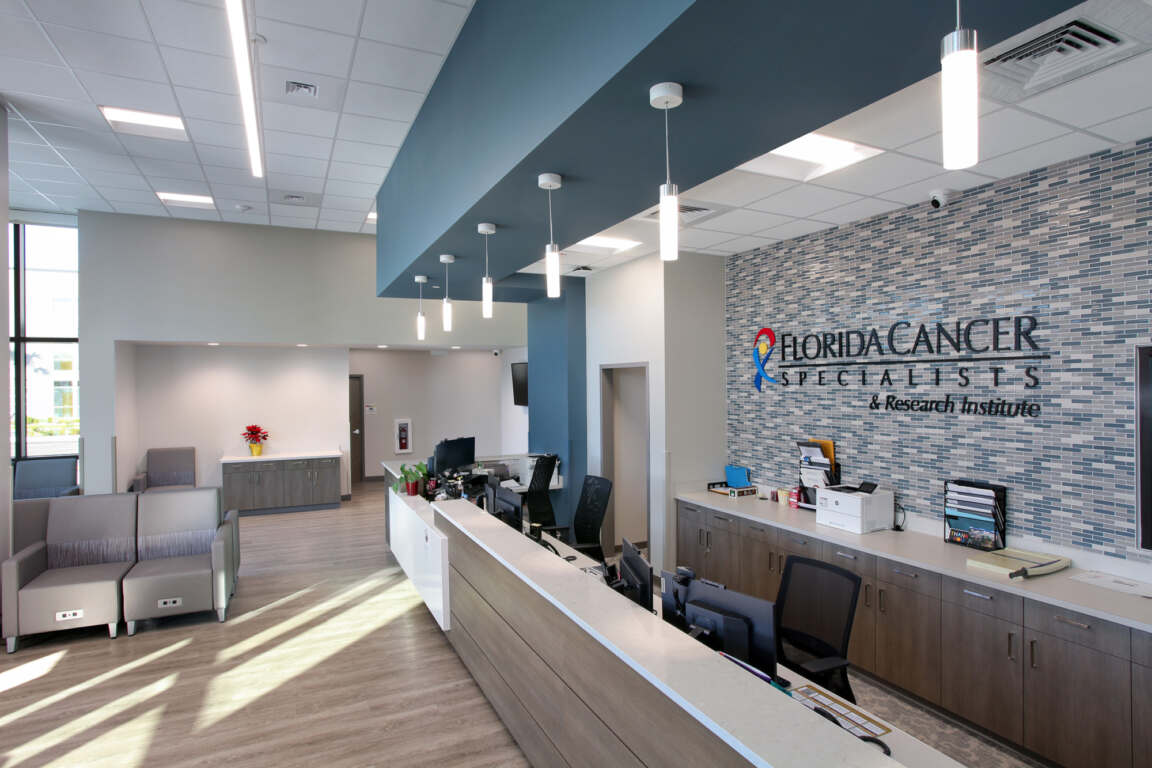 Florida Cancer Specialists’ new Estero Cancer Center showcases extensive healthcare design experience and adaptability. Delivering this state-of-the-art center required not only a deep knowledge of oncology and patient care, but also the ability to reimagine and refresh the organization’s standard building components and finishes to comply with local design codes.