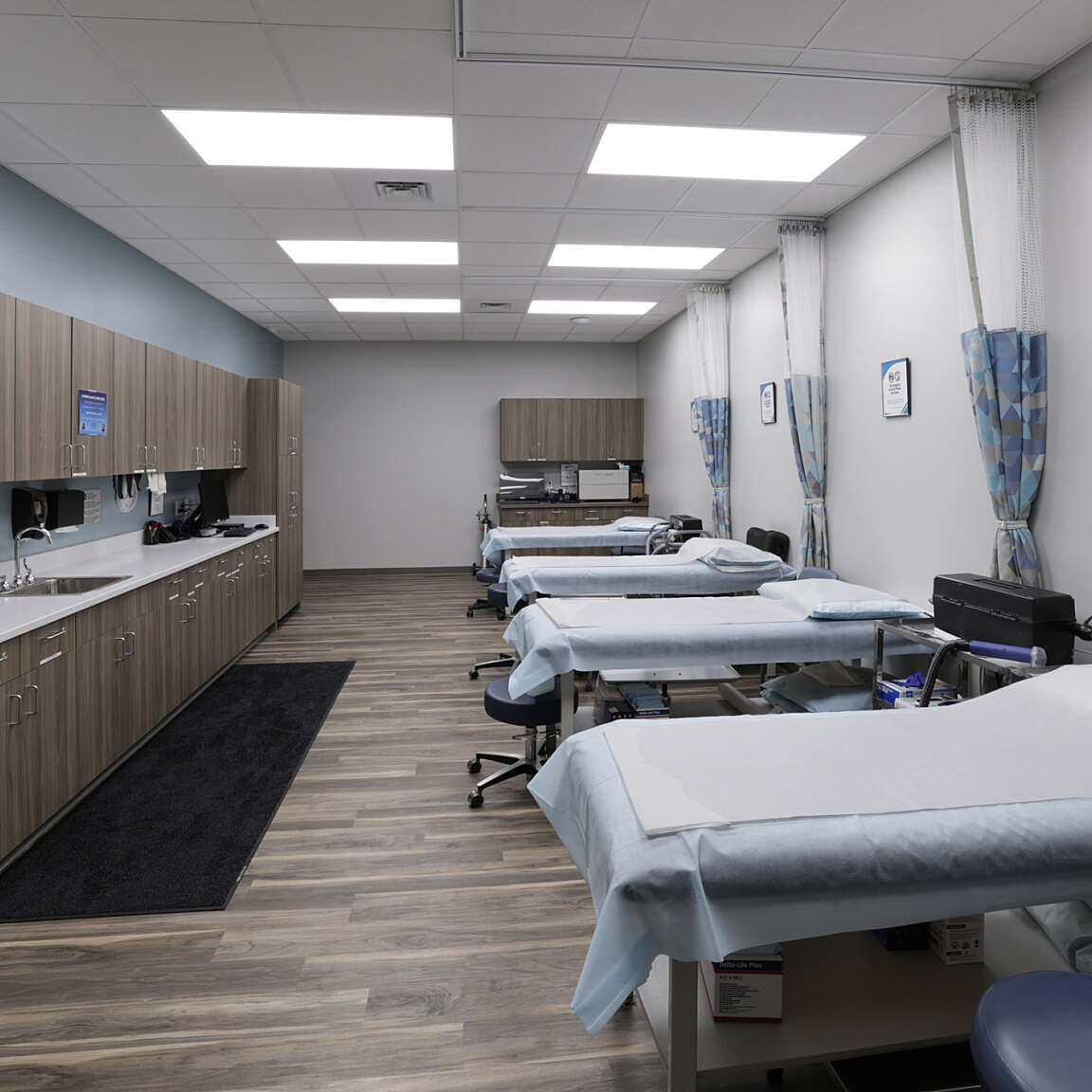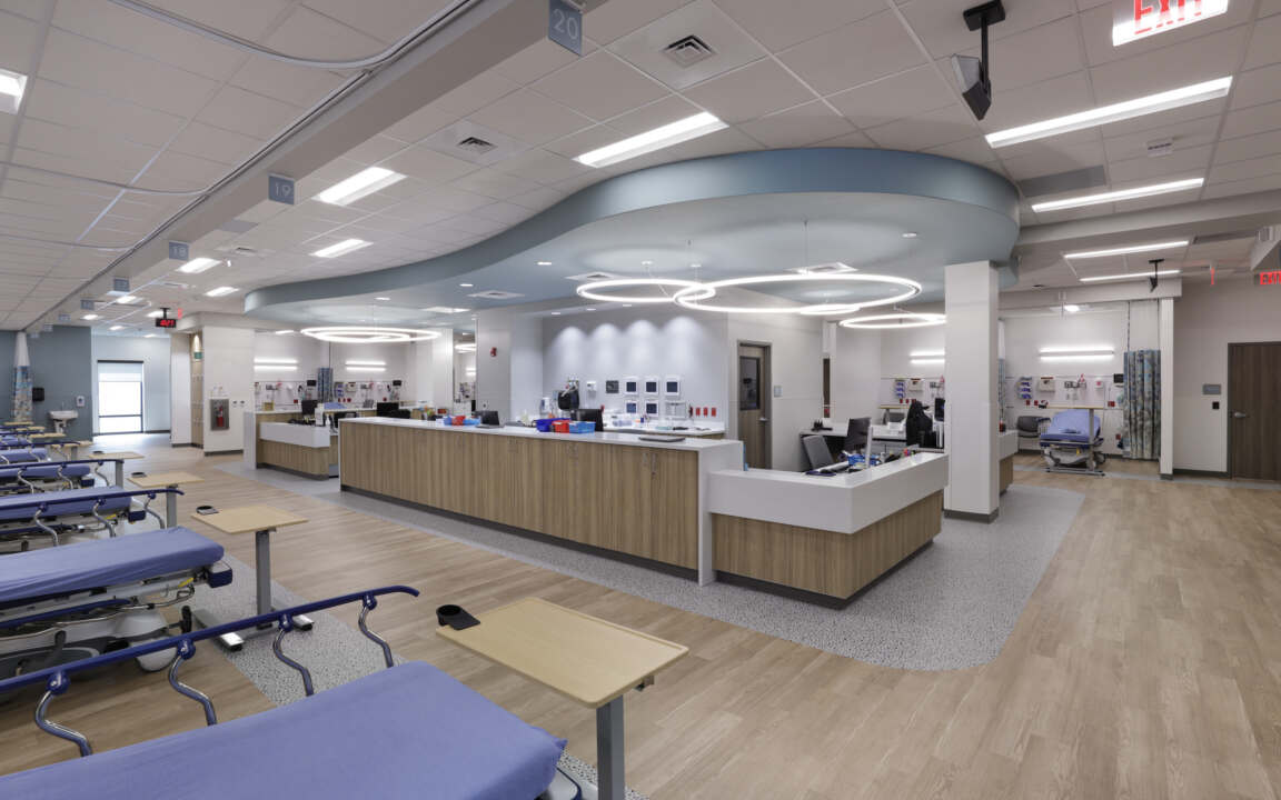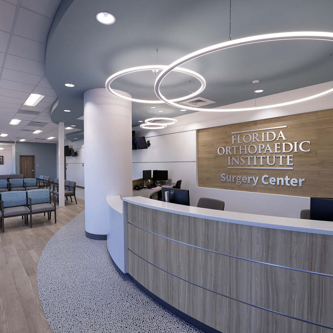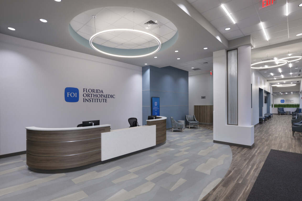 The Florida Orthopaedic Institute Temple Terrace orthopaedic clinic is designed to enhance the experience of both patients and staff, featuring 60 exam rooms and dedicated spaces for physical and occupational therapy. Equipped with advanced imaging capabilities, including MRI, CT, and X-ray facilities, the clinic ensures efficient diagnostics and treatment. The surgery center comprises multiple operating rooms and patient bays, providing a state-of-the-art environment for surgical procedures that prioritize patient comfort and care. While the exterior received minimal upgrades, such as window replacements and new staircases for improved access to utility spaces on the mezzanine level, the interior underwent a complete gut renovation to create a welcoming and functional space that supports the needs of healthcare professionals and patients.