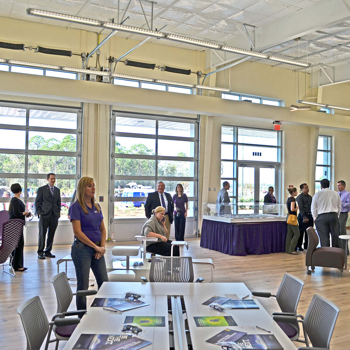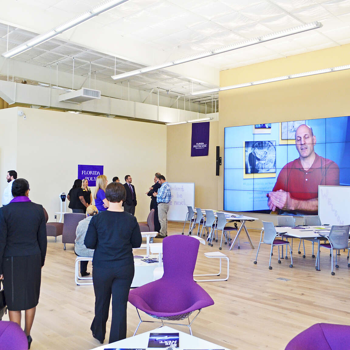 Both the Admissions Center and Wellness Center (Phase 1) were integral to providing resources to the inaugural class and faculty of Florida Polytechnic University. The Admissions Center at Florida Polytechnic University was the first new building outside of Santiago Calatrava’s contributions to be completed on the campus of Florida’s newest state university. A video wall, composed of sixteen (16) 55” LCD flat panel displays, allows visitors to learn more about the current and future growth plans for the only STEM-focused public university in the state. STA provided architectural design and construction drawings for this project in less than 30 days. Construction was completed in three months. The design team worked diligently to meet the university’s ambitious schedule. The facility opened in November, only 9 months before the first students arrived on campus for classes.