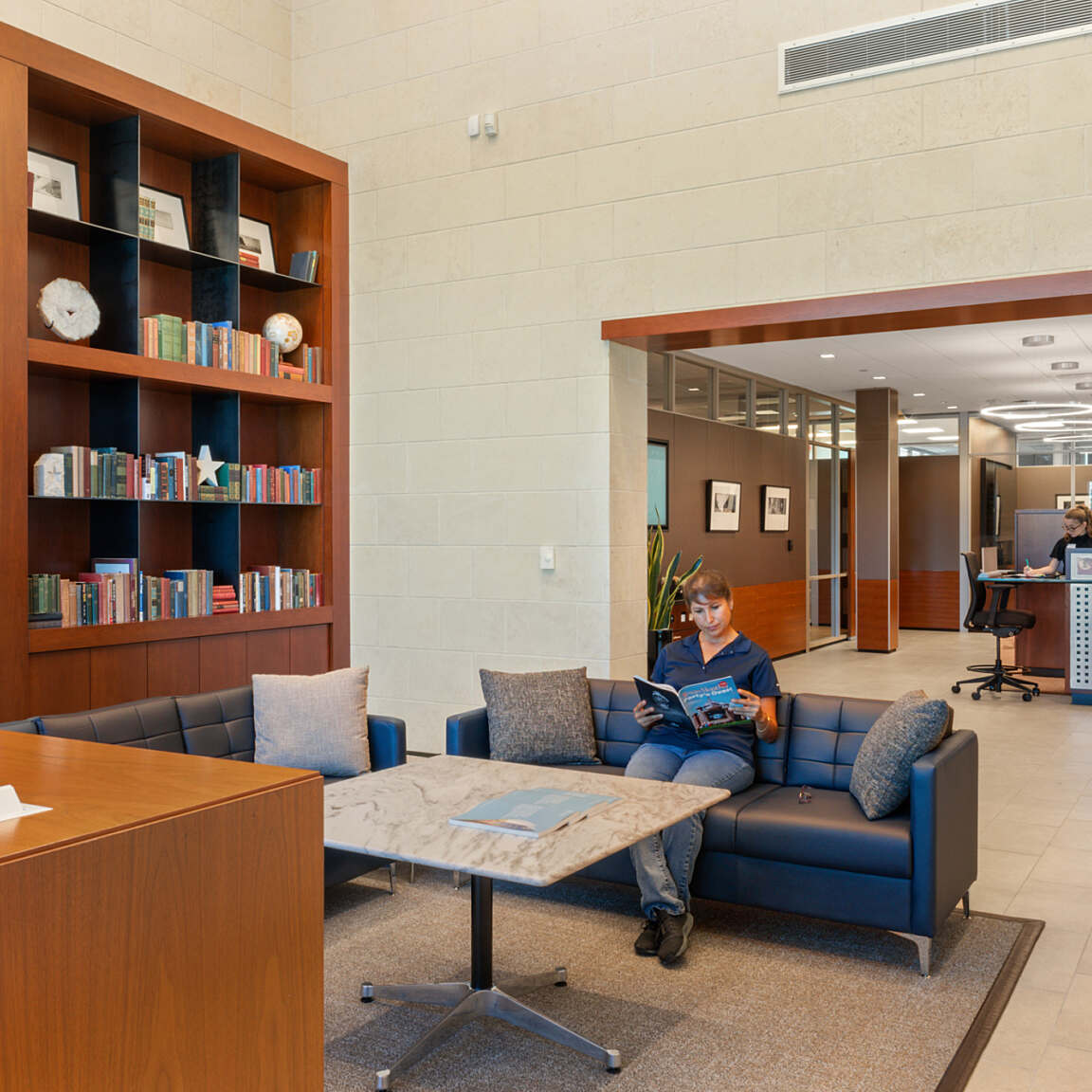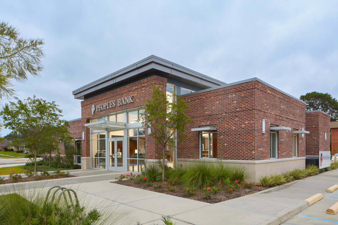 Within, the program unfolds around a light-filled open lobby and greeter station, leading to a thoughtfully organized interior that includes the Frost Room, private offices, open workspaces, and a flexible conference room. Staff areas—such as a breakroom, shared work zone, IT/Security room, custodial space, and storage—are efficiently integrated to support daily operations. A four-lane motor bank with teller stations complements the facility, reinforcing a seamless customer service experience through a cohesive and responsive architectural solution.