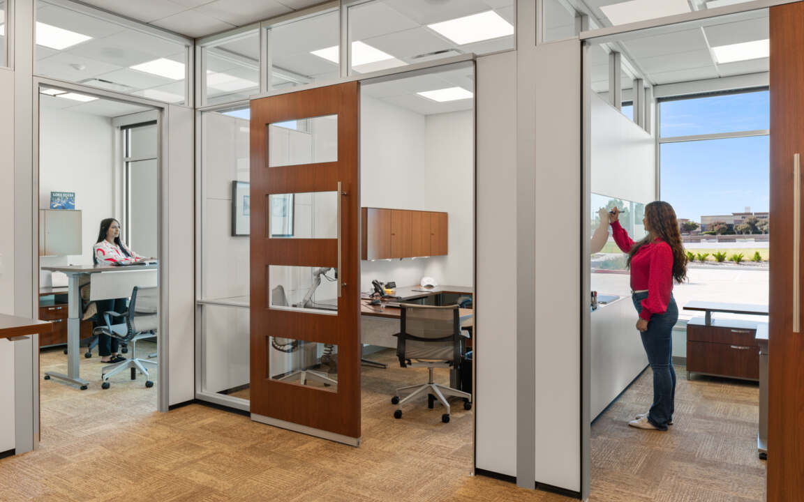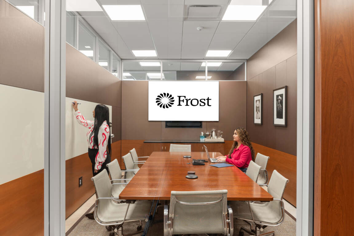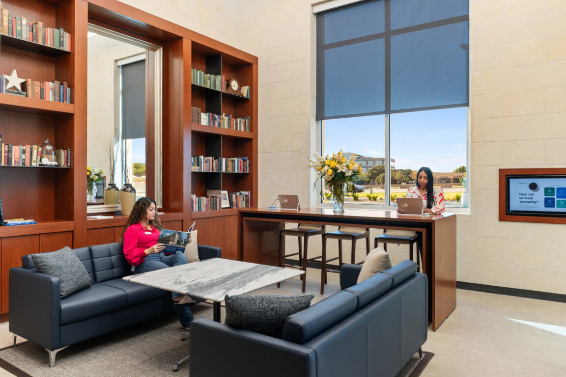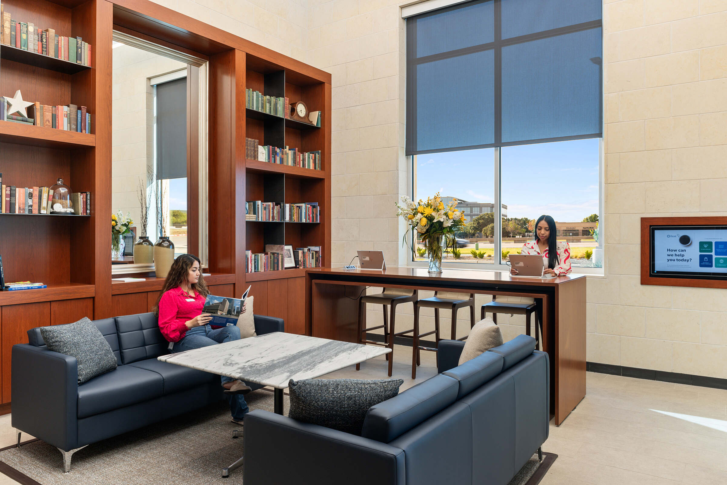 Staff amenities and operational functionality are equally prioritized throughout the facility. The motor bank office includes large windows with full visibility of the drive-up lanes, ensuring seamless monitoring and service for customers utilizing the exterior banking features. For staff comfort and convenience, the building is equipped with a break room and two single-occupant restrooms. A private room for phone conversations further enhances the space, offering a quiet retreat for sensitive or extended calls. Altogether, Frost Bank Las Colinas represents a modern approach to banking—blending practical design, thoughtful amenities, and architectural character to create a dynamic community banking experience.