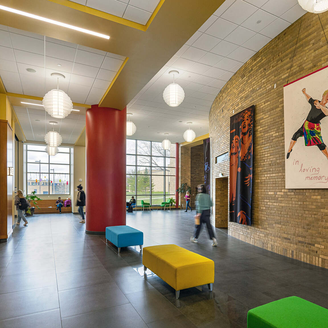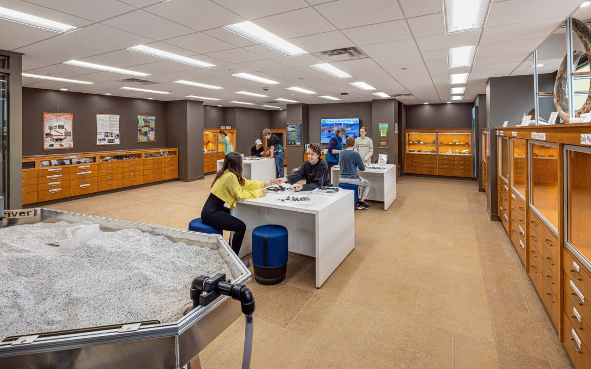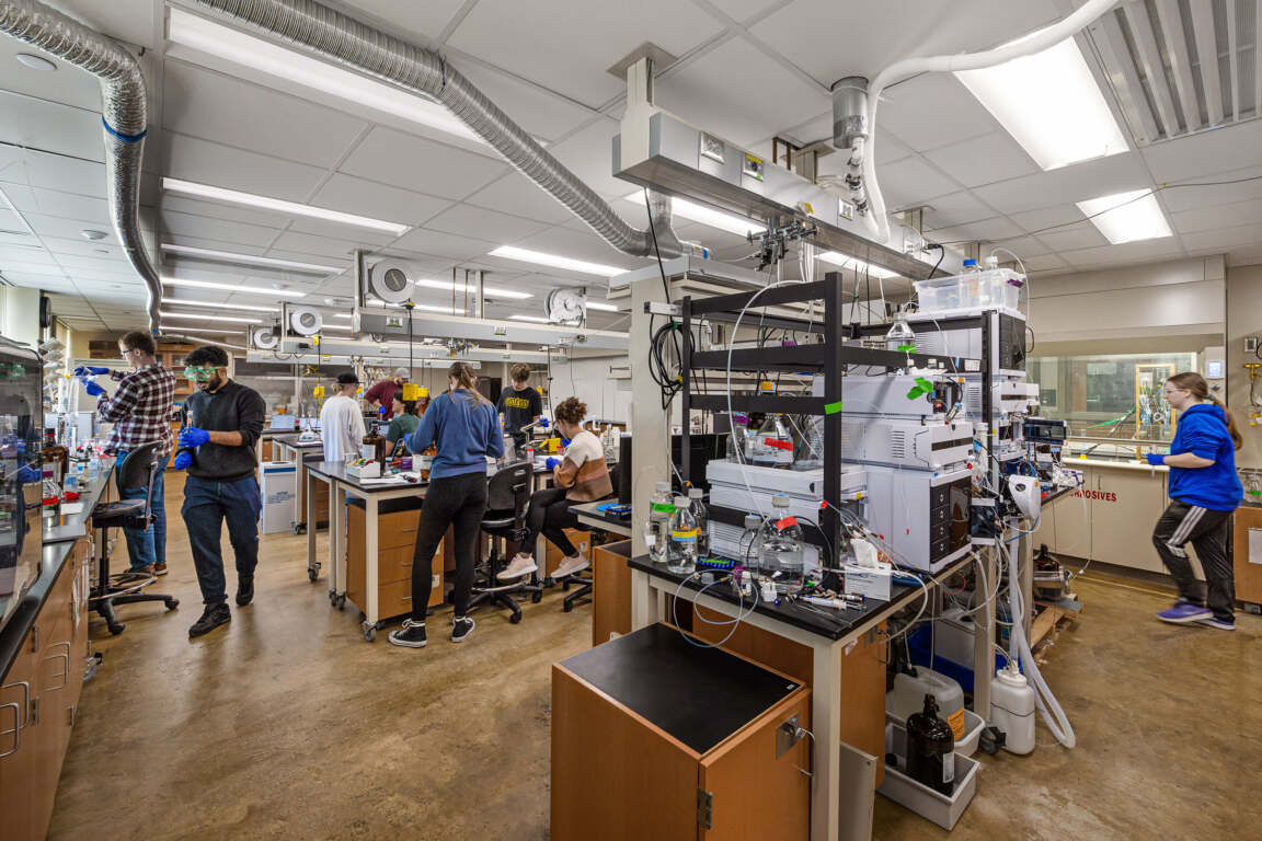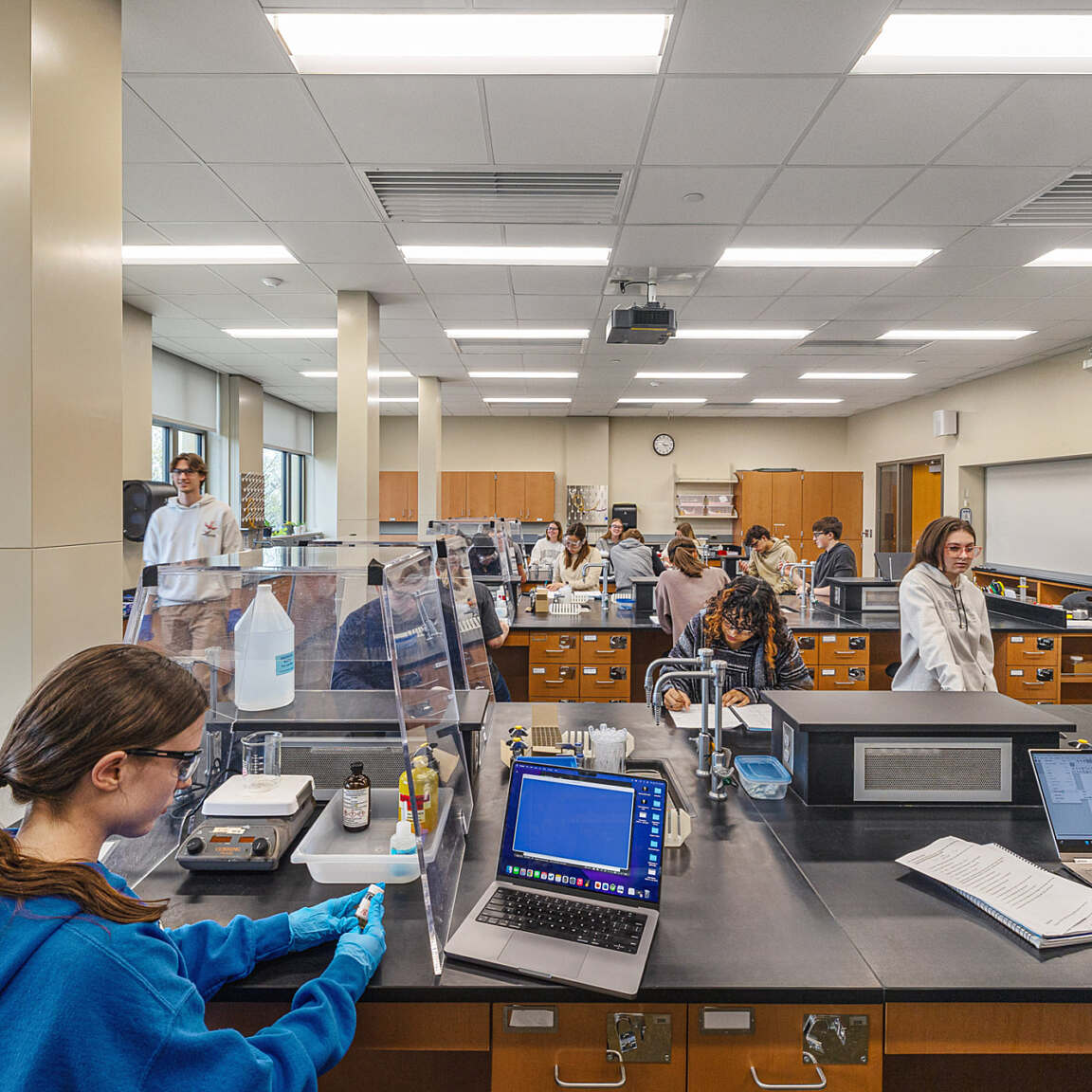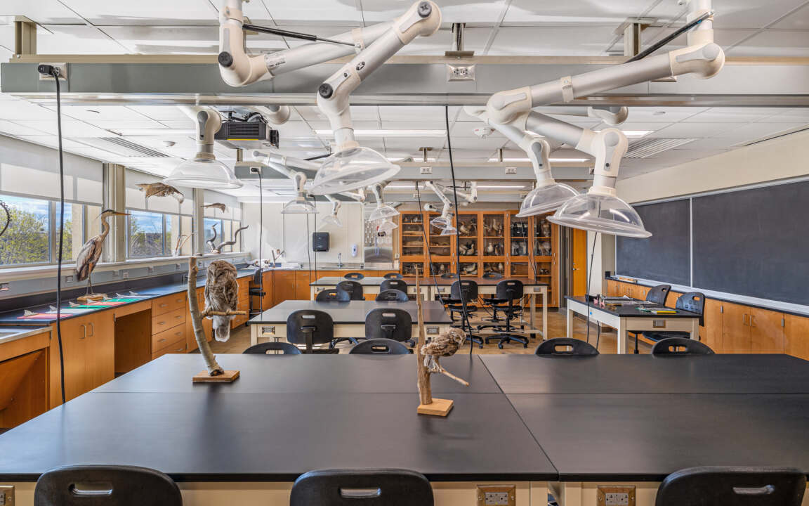 The building design includes an enclosed bridge connecting Nobel Hall’s natural sciences to Olin Hall’s physical sciences. Additionally, a new lecture auditorium and black box stage merge the sciences with the performing arts, creating an integrated learning environment that encourages cross-disciplinary engagement.
